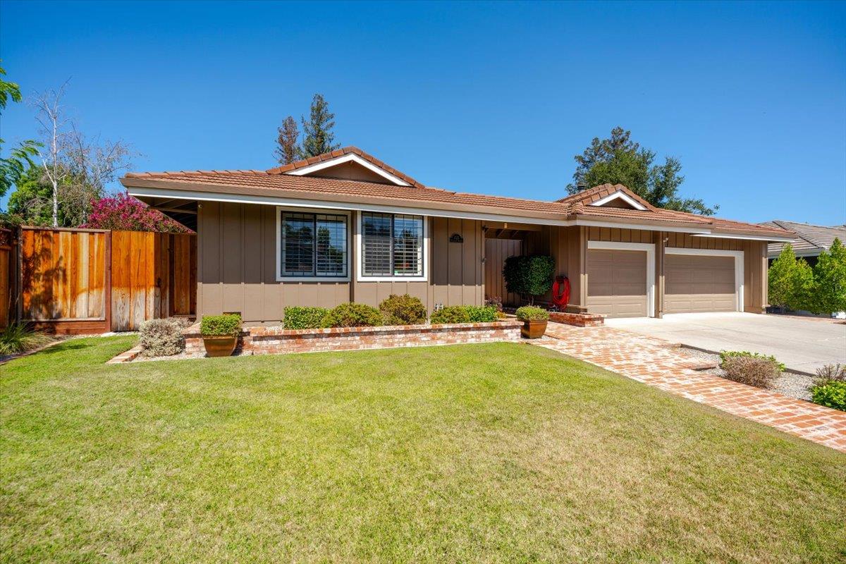 3 bedroom plus an office/den, 2.5 bathrooms and a 3 car garage. Single story ranch style with large rooms. Formal dining area, separate family room. High quality upgrades. Formal entry. High and vaulted ceilings throughout. Top of the line engineered wood flooring in the formal rooms. The kitchen has granite counters, an island with a prep sink and gas stove top, a built-in oven and microwave, stainless steel sink, custom tile floor and a large breakfast area. The cabinets fronts are solid Russian birch wood. Access to the pool area and patio is from the kitchen/dining room or main bedroom. The exterior is beautifully landscaped with brick decking, a large patio and a pool and spa with security fencing. The primary bedroom is en-suite with a jetted tub and separate shower. Double sinks, tiled counters, a skylight and a walk-in closet. Plantation shutters, crown molding, and custom paint add a luxury feel to this beautiful home. The hall bathroom has double sinks and a shower over the tub. The office has custom wood shelving, cabinets and a built-in desk (or it could be converted to a fourth bedroom). Solar panels leased from SunRun. Close to Guadalupe Oak Grove Park, Almaden Lake Park and the Los Alamitos trail. A few minutes drive to major shopping and access to the fwy.