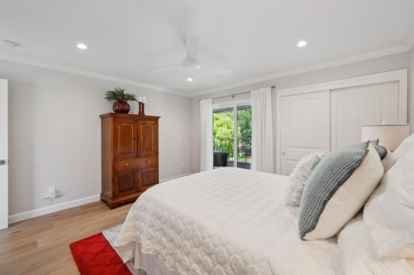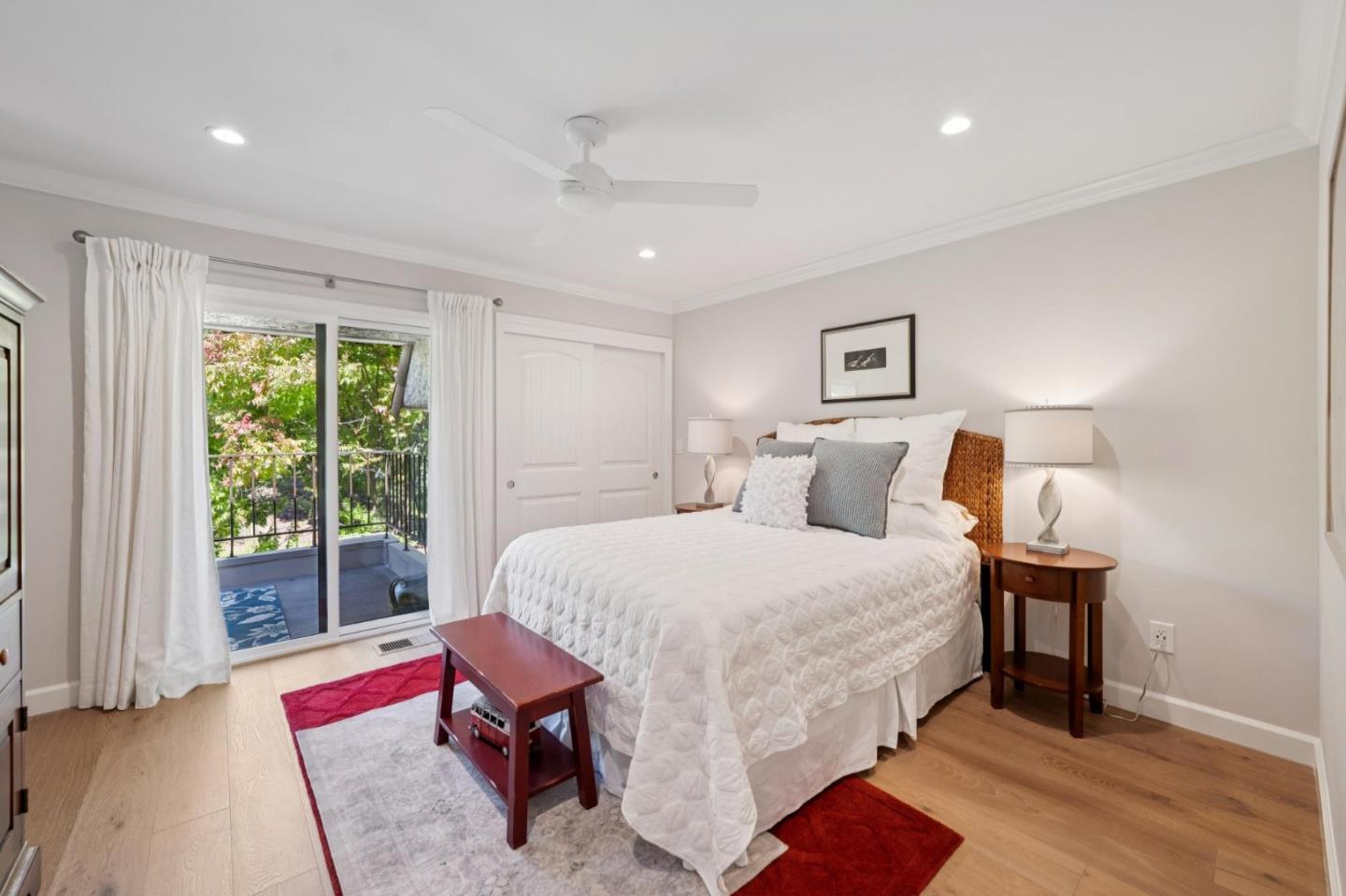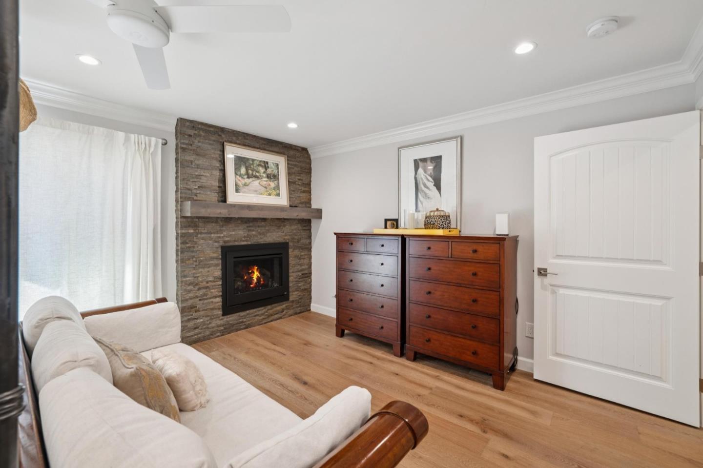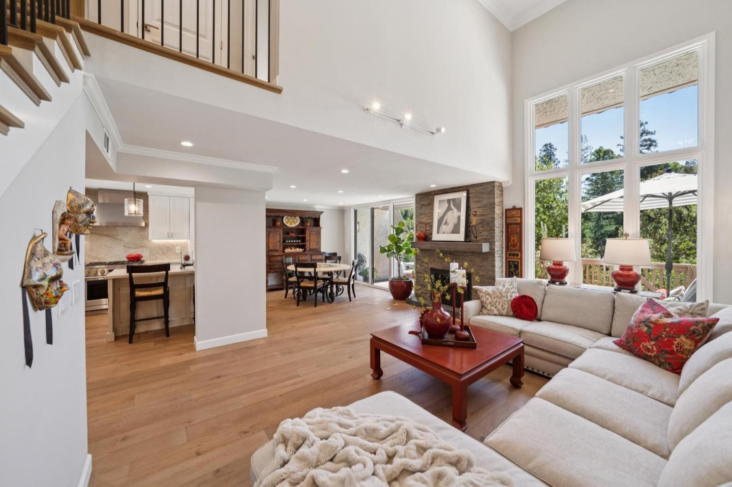 Set within the highly desirable, gated enclave of Rinconada Hills, enter a private front courtyard, framed by mature greenery and potted plantings, welcoming you into a light-filled and updated interior. Soaring ceilings and a large wall of windows fill the great room with natural light. A floor-to-ceiling stacked stone fireplace creates a striking focal point, while sliding glass doors extend the living area to a private deck perfect for morning coffee or relaxed evening gatherings. The remodeled kitchen is a true centerpiece, showcasing a large center island with seating, ample countertops, stunning backsplash, premium appliances, and crisp new cabinetry. Upstairs, the generous primary suite offers a peaceful retreat, complete with its own private balcony, a sleek fireplace, and spa-like en-suite bath featuring dual vanities and an oversized glass-enclosed shower. Two additional bedrooms, one ensuite, provide flexibility for family, guests, or a home office - one with a built-in storage wall and charming balcony access. Enjoy access to swimming pools, a spa, clubhouse with kitchen and fireplace, tennis and bocce courts, meandering walking paths, and 24/7 security, all just minutes from downtown Los Gatos and Campbell, top-rated schools, hiking trails, and major commute routes.