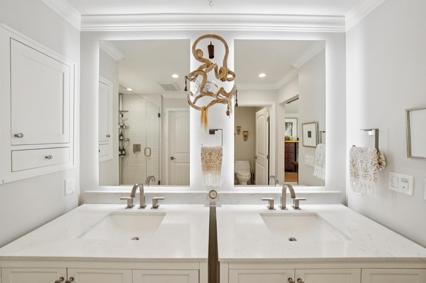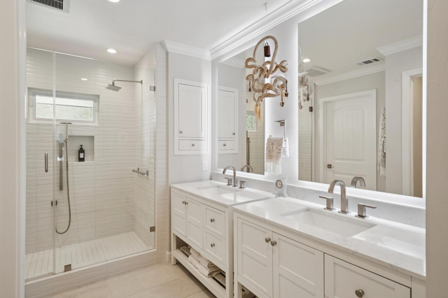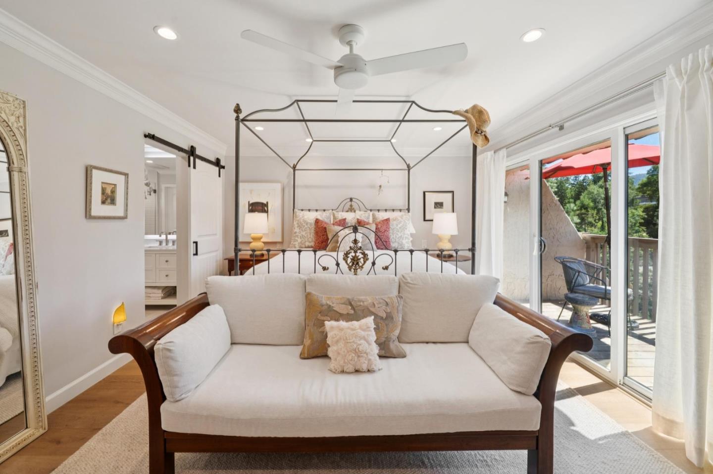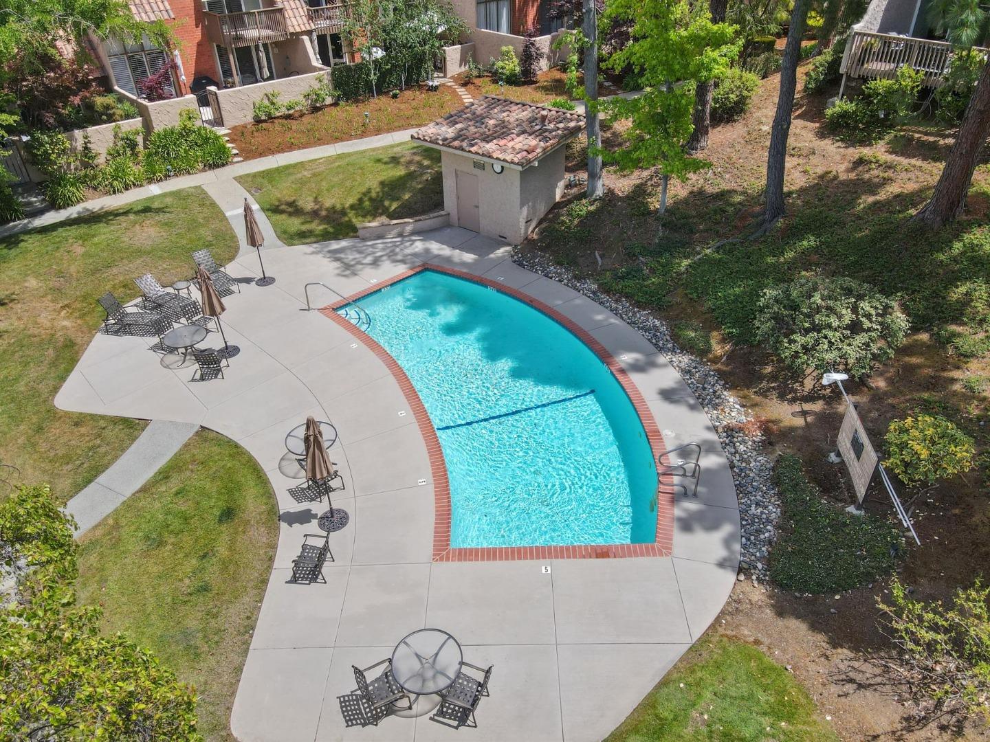 Set within the highly desirable, gated enclave of Rinconada Hills, enter a private front courtyard, framed by mature greenery and potted plantings, welcoming you into a light-filled and updated interior. Soaring ceilings and a large wall of windows fill the great room with natural light. A floor-to-ceiling stacked stone fireplace creates a striking focal point, while sliding glass doors extend the living area to a private deck perfect for morning coffee or relaxed evening gatherings. The remodeled kitchen is a true centerpiece, showcasing a large center island with seating, ample countertops, stunning backsplash, premium appliances, and crisp new cabinetry. Upstairs, the generous primary suite offers a peaceful retreat, complete with its own private balcony, a sleek fireplace, and spa-like en-suite bath featuring dual vanities and an oversized glass-enclosed shower. Two additional bedrooms, one ensuite, provide flexibility for family, guests, or a home office - one with a built-in storage wall and charming balcony access. Enjoy access to swimming pools, a spa, clubhouse with kitchen and fireplace, tennis and bocce courts, meandering walking paths, and 24/7 security, all just minutes from downtown Los Gatos and Campbell, top-rated schools, hiking trails, and major commute routes.
