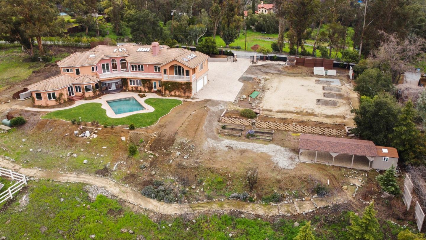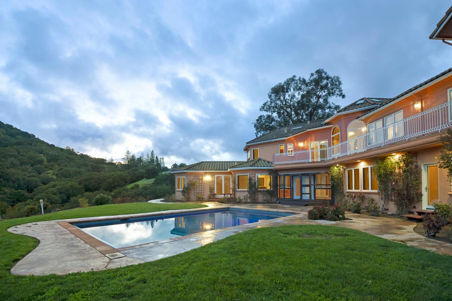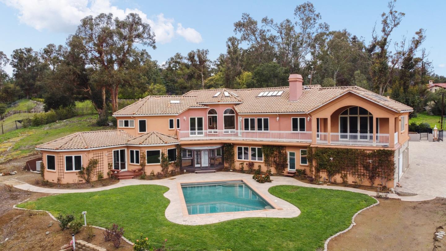 Opportunity defines this 5,377sf+- estate on a 2.38-acre+- canvas with an abundance of usable land with a swimming pool. Graced by incredible mountain and canyon panoramas, this home is situated next door to the Sierra Azul Open Space Preserve offering hiking trails for the outdoor enthusiasts. Plenty of opportunity to create your landscaped paradise, or a car enthusiasts storage dream, or produce sustainable gardens, and so much more. The home has 4 beds (3 up, 1 down), 4 full and 2 half baths, living room, family room, formal dining room, office, gym room with an expansive closet for your equipment, enclosed patio with attached cat patio, and laundry room. Upstairs, a sanctuary awaits w/ a sophisticated primary suite featuring high ceilings with skylights covered by electronic retractable shades, a jetted tub and separate stall shower, a walk-in closet, and private patio with French doors overlooking your expansive yard and calming views. Downstairs is an attached suite with its own separate kitchen. Expansive yard with a pool, chicken coop/dog run, photovoltaic solar, whole house generator, and more to elevate your lifestyle. Dual electronic gates lead to a car park, perfect for entertaining, offering space for many vehicles or oversized recreational vehicles. Los Gatos Schools.