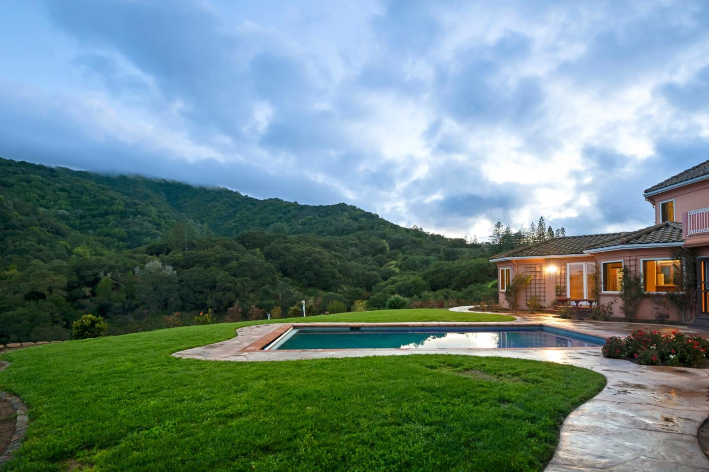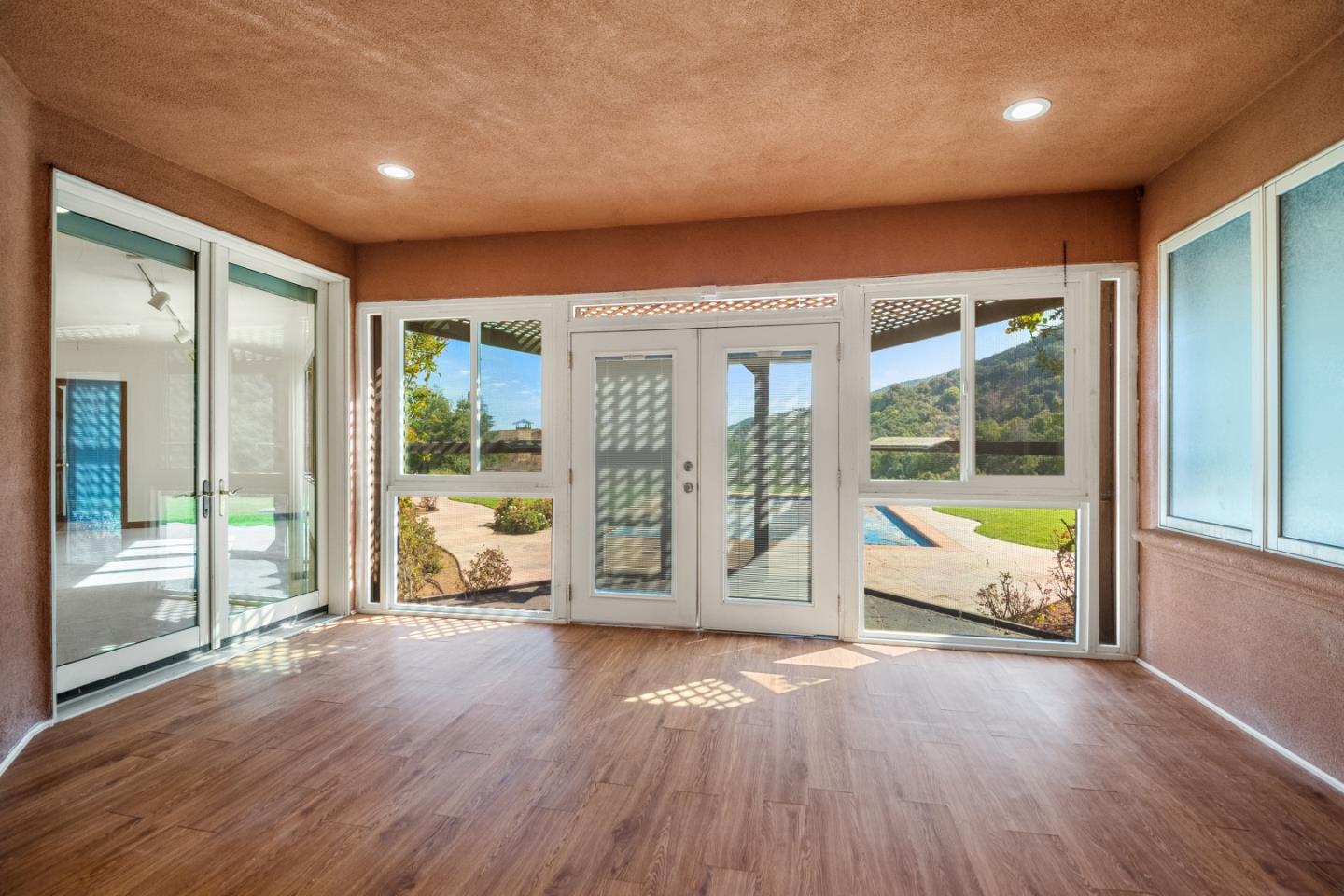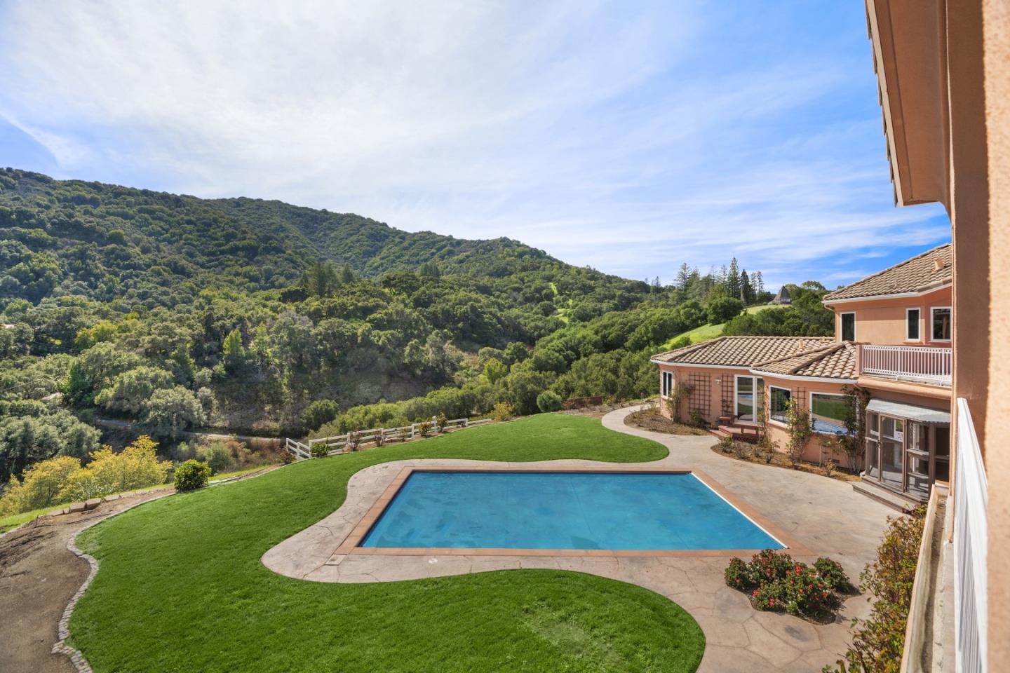 Opportunity defines this 5,377sf+- estate on a 2.38-acre+- canvas with an abundance of usable land with a swimming pool. Graced by incredible mountain and canyon panoramas, this home is situated next door to the Sierra Azul Open Space Preserve offering hiking trails for the outdoor enthusiasts. Plenty of opportunity to create your landscaped paradise, or a car enthusiasts storage dream, or produce sustainable gardens, and so much more. The home has 4 beds (3 up, 1 down), 4 full and 2 half baths, living room, family room, formal dining room, office, gym room with an expansive closet for your equipment, enclosed patio with attached cat patio, and laundry room. Upstairs, a sanctuary awaits w/ a sophisticated primary suite featuring high ceilings with skylights covered by electronic retractable shades, a jetted tub and separate stall shower, a walk-in closet, and private patio with French doors overlooking your expansive yard and calming views. Downstairs is an attached suite with its own separate kitchen. Expansive yard with a pool, chicken coop/dog run, photovoltaic solar, whole house generator, and more to elevate your lifestyle. Dual electronic gates lead to a car park, perfect for entertaining, offering space for many vehicles or oversized recreational vehicles. Los Gatos Schools.