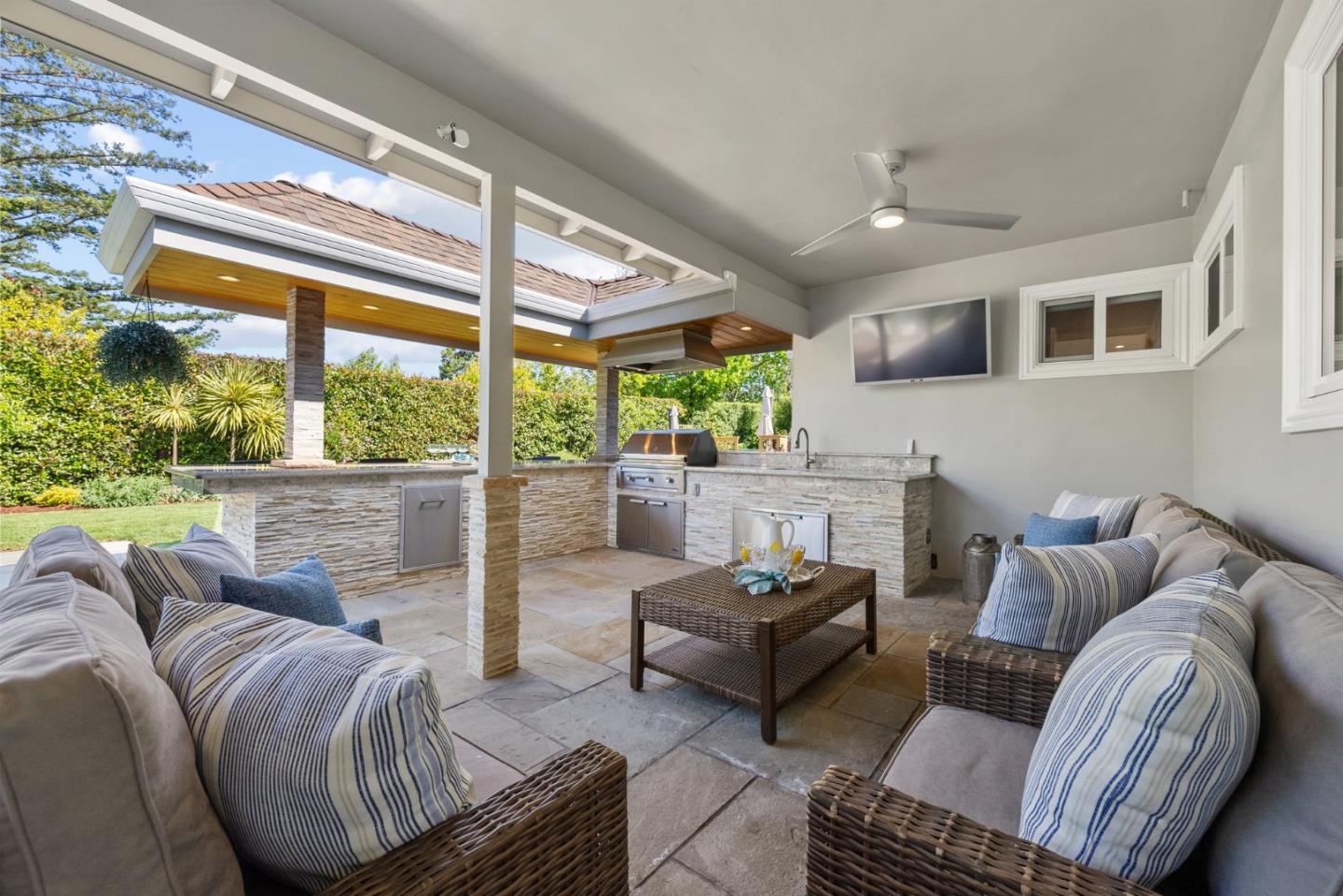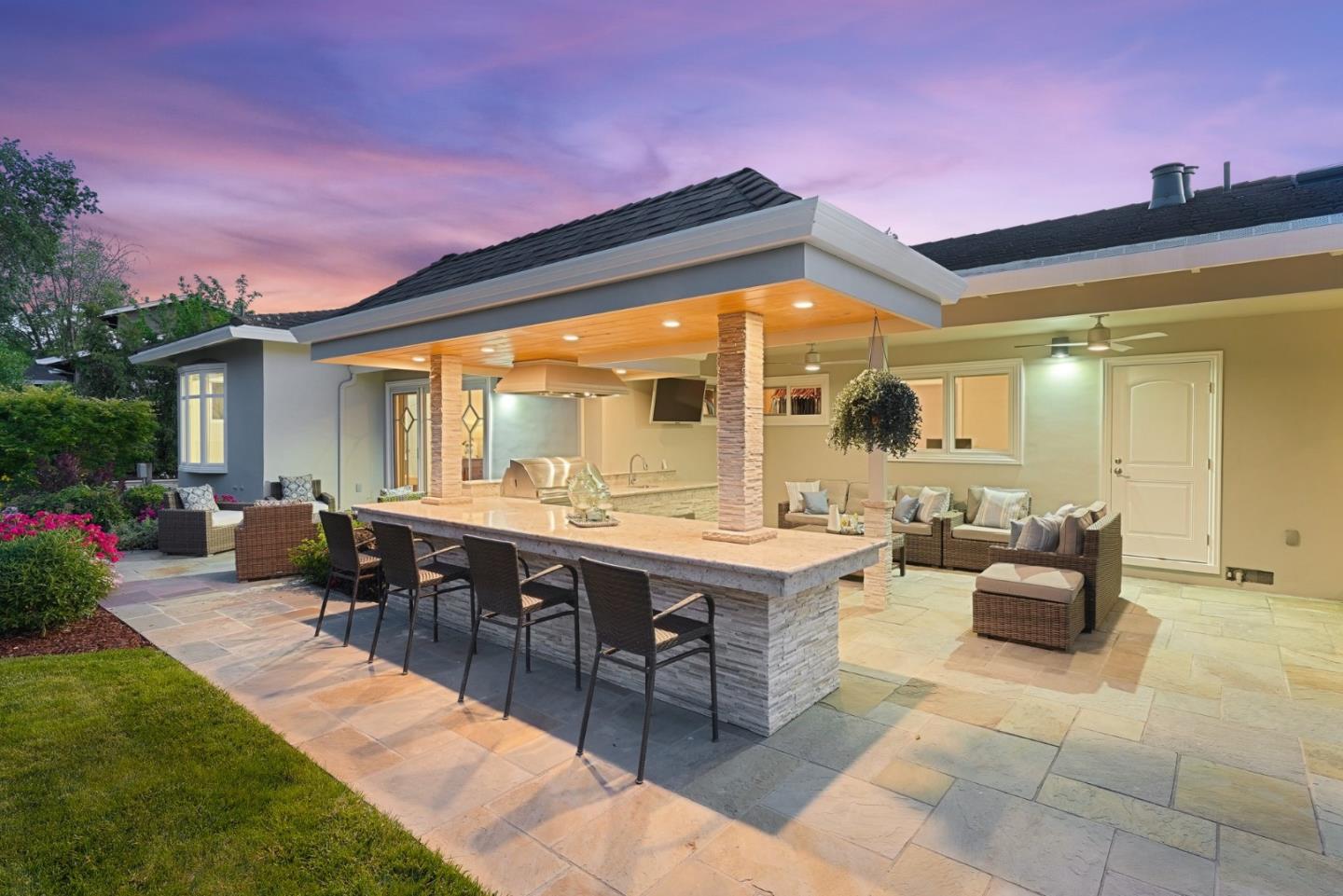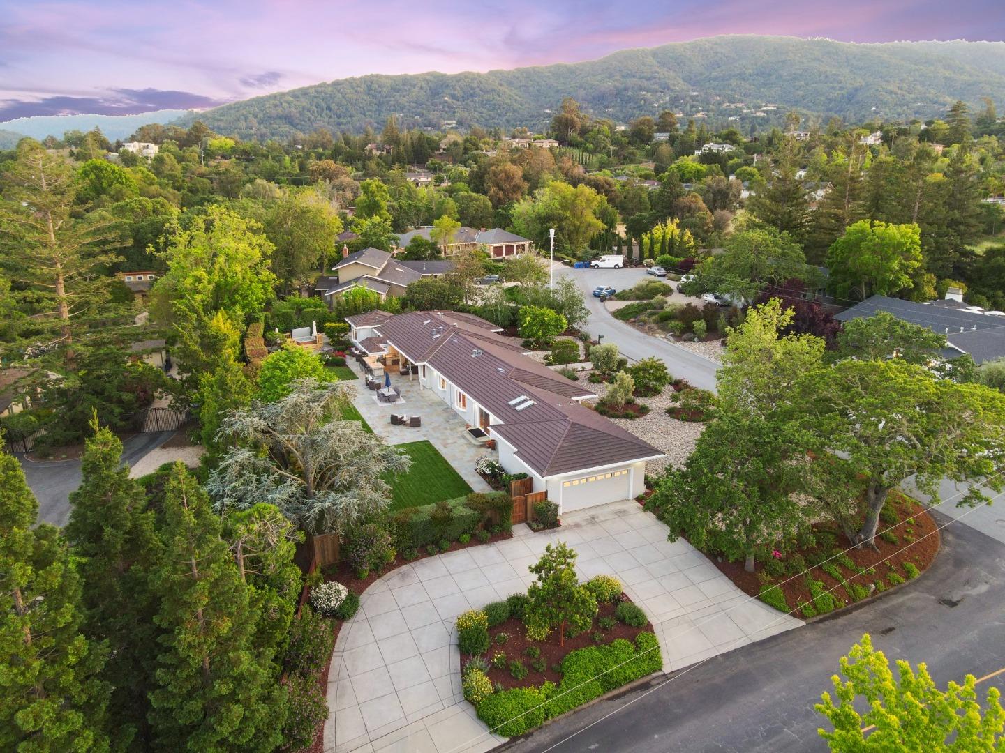 Beautiful single story home on large flat lot in popular Loma Serena neighborhood of Monte Sereno! Spacious rooms, large picture windows showcase lovely views of surrounding foothills & beyond. Mature landscaping of variegated & flowering bushes & trees create relaxing, peaceful retreat. Sparkling hardwood floors flow through generous living areas. Recently remodeled, thoughtful interior provides ample space for entertaining. Generous living room & formal dining area overlook front landscape. Large kitchen w/ ample cabinetry, center island w/ seating opens to expansive family room w/ views of rear landscape. Four bedrooms on left wing, gorgeous primary bedroom w/ spa inspired bath and 3 additional bedrooms including another en-suite and separate office. Rear yard is built for enjoyment! Large slate patio, covered outdoor loggia w/ built-in kitchen. Large counter bar for casual dining, relax under the covered loggia watching a game on the outdoor TV. Generous lush lawn surrounded by garden trees & flowing shrubs. Expansive side yard w/ extra storage. Enjoy 42 acres of open space & trails for the exclusive use of homeowners of association. Top Los Gatos schools! Easy commute w/ convenient access to Hwy 85 & 880.
