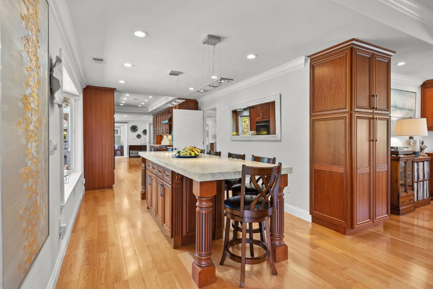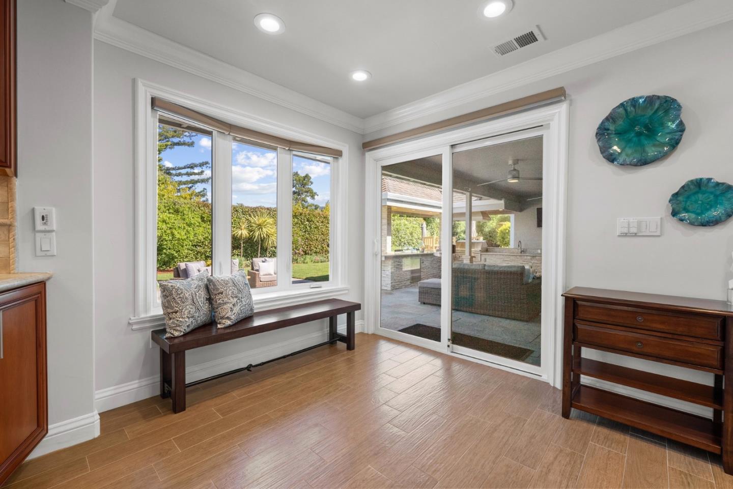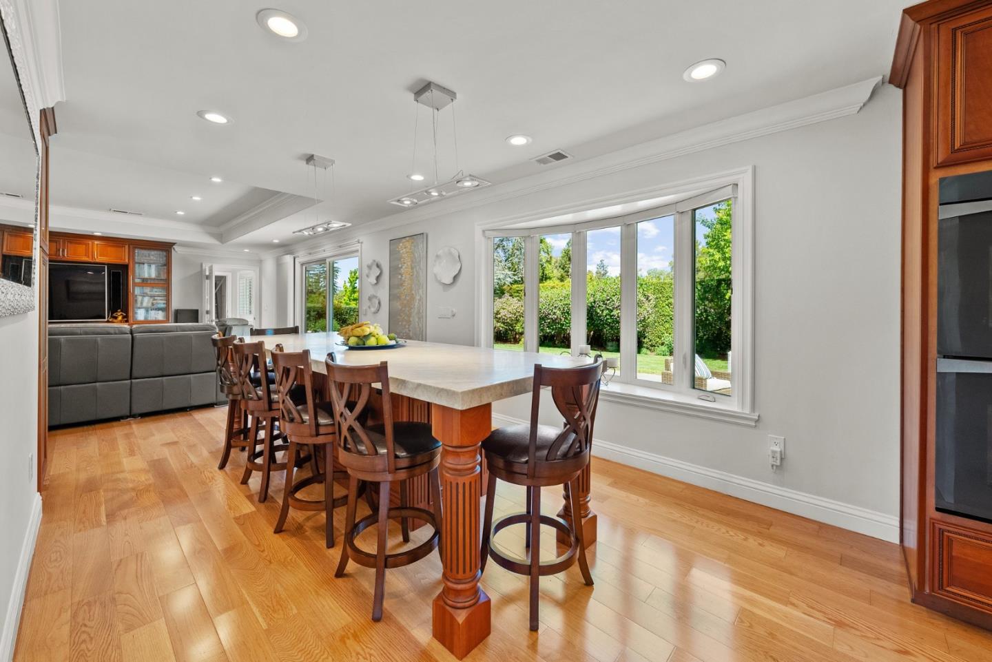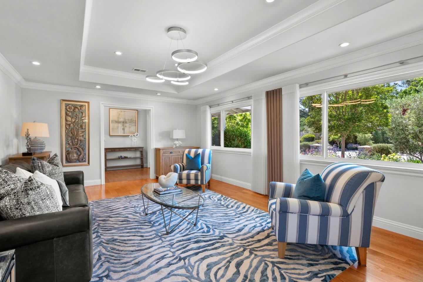 Beautiful single story home on large flat lot in popular Loma Serena neighborhood of Monte Sereno! Spacious rooms, large picture windows showcase lovely views of surrounding foothills & beyond. Mature landscaping of variegated & flowering bushes & trees create relaxing, peaceful retreat. Sparkling hardwood floors flow through generous living areas. Recently remodeled, thoughtful interior provides ample space for entertaining. Generous living room & formal dining area overlook front landscape. Large kitchen w/ ample cabinetry, center island w/ seating opens to expansive family room w/ views of rear landscape. Four bedrooms on left wing, gorgeous primary bedroom w/ spa inspired bath and 3 additional bedrooms including another en-suite and separate office. Rear yard is built for enjoyment! Large slate patio, covered outdoor loggia w/ built-in kitchen. Large counter bar for casual dining, relax under the covered loggia watching a game on the outdoor TV. Generous lush lawn surrounded by garden trees & flowing shrubs. Expansive side yard w/ extra storage. Enjoy 42 acres of open space & trails for the exclusive use of homeowners of association. Top Los Gatos schools! Easy commute w/ convenient access to Hwy 85 & 880.