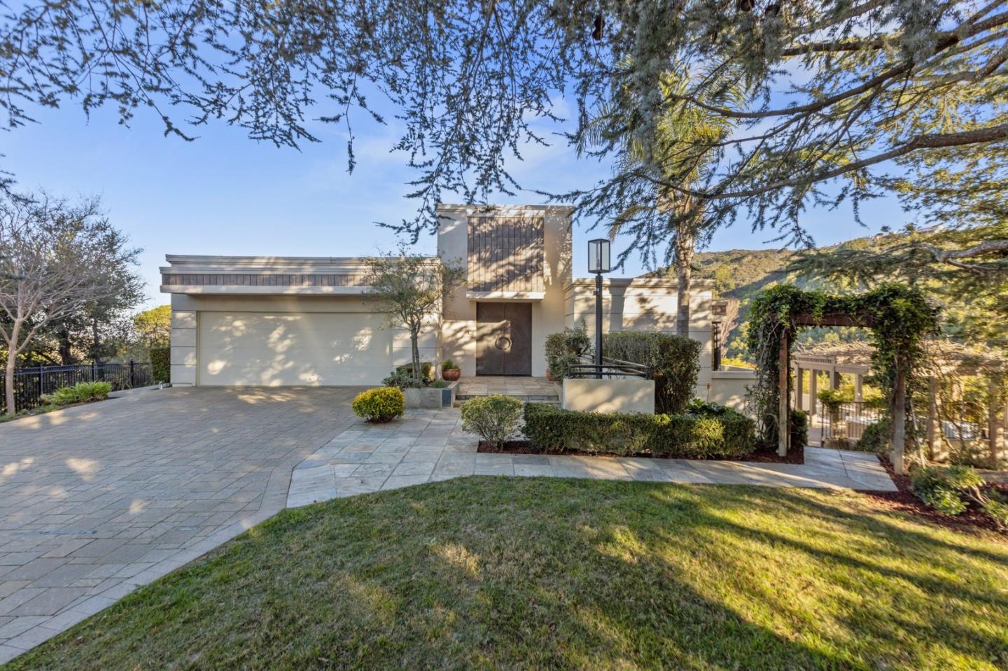 Expansive city light & mtn views abound! Private contemporary estate in LG! Views like no other! Due north-city lights, due south-mtn peaks & canyons. Juxtaposition of 2 worlds to wake up to each day! Spectacular floor to ceiling pic windows thru-out. Gated entrance, grandeur of 8ft cast metal entry doors, awe-inspiring foyer w/ 18ft ceiling & skylights. Private guest wing. Sleek kitchen design & prof grade appl. Elevated formal dining rm-views, views, views! Lg living room enjoys same captivating views, sexy granite facade around gas fireplace, Breath-taking primary suite-3 adjoining 6 X 7 ft clear glass panel wall to access views thru 18ft x 18ft liv window + gas fireplace & built-in work-station. Bath has luxury top of mind! Jetted 2 person tub, stall shower w/ wall of glass & mtn views. Automated privacy screening at touch of button. Sep vanities, radiant heated flrs. Sep walk-in closets both w/ organizers. Rear grounds-vibrant oasis w/ sparkling pool, hot tub, firepit, built-in BBQ. Natural surroundings to savor. Generous patio & decking for large gatherings. Escape the hustle & bustle, relish this spectacular setting. Expansive interiors & exteriors to enjoy, this contemporary estate exuding elegance and sophistication, unparalleled sanctuary in Los Gatos! Top LG Schools!