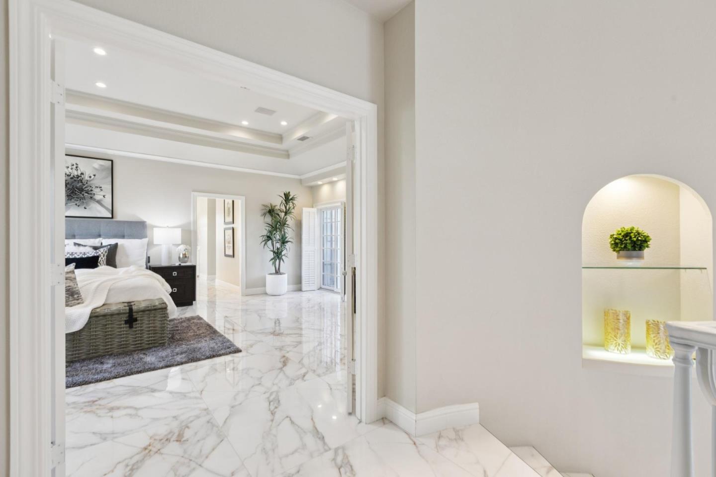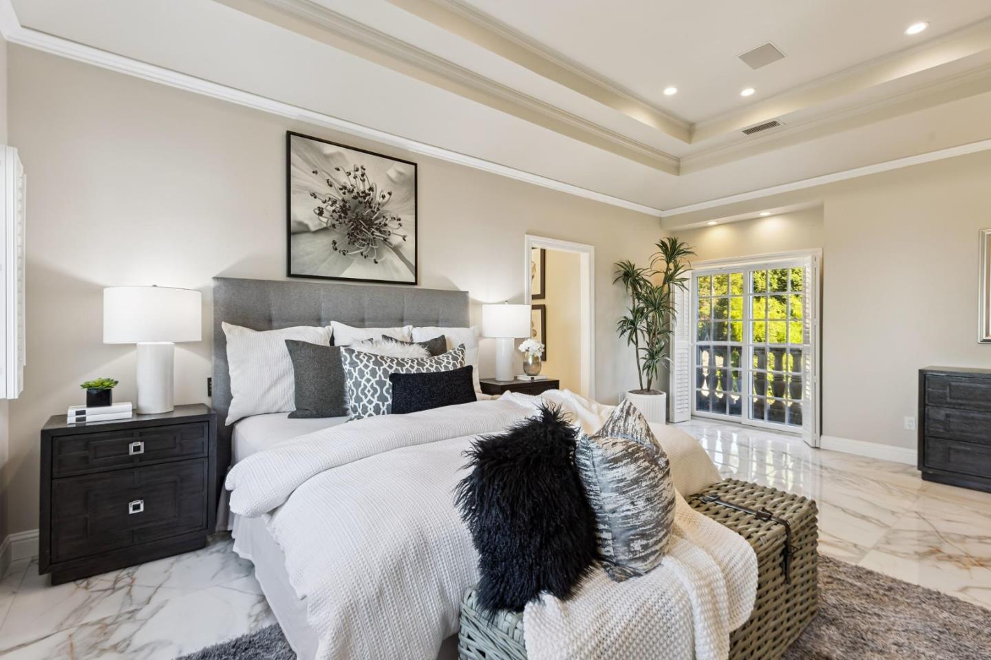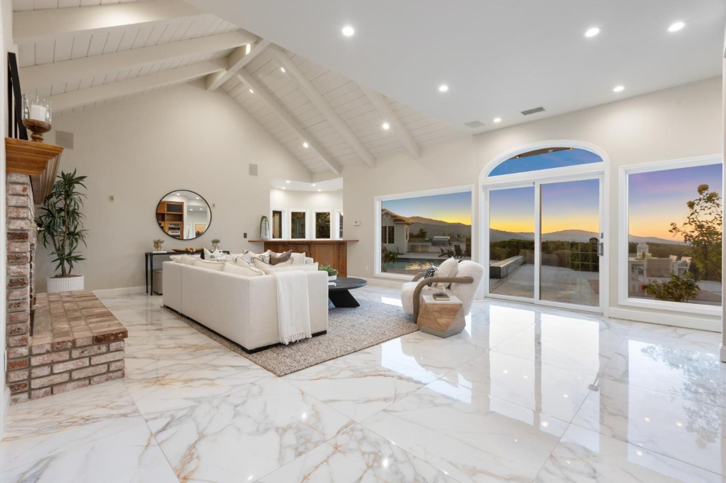 Set along one of Los Gatos most sought after ridge lines, this extraordinary estate captures sweeping yet intimate panoramas. Nearly every window frames views across downtown Los Gatos, Vasona Lake, the surrounding mountain ridges, and even the distant skylines of San Francisco, Oakland, and San Jose. Wrapped in privacy and framed by elegant landscaping, this breathtaking residence combines grandeur, comfort, and a deep connection to its natural setting. A tall wrought-iron entry door accented by mosaic glass opens to a grand foyer with volume ceilings and an elegant chandelier. Dual staircases sweep upward, creating balance and presence, while large windows allow natural light to pour in. Radiant heated marble and tile floors flow throughout the property for year-round comfort. The home unfolds with thoughtful flow and scale. With an expansive primary suite, four guest bedrooms, executive office, attached ADU with full kitchen and bath, detached pool house and two finished three-car garages, this estate is a home of scale, refinement, and enduring presence. With panoramic views dusk to dawn, an elegant design and resort-style amenities, it offers a true Los Gatos estate experience private, expansive, memorable, and a wonderful place to call home.
