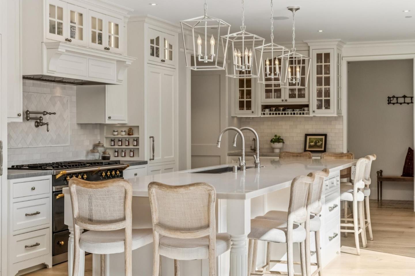 This spectacular Monte Sereno estate showcases exquisite architecture, curated landscape, and exceptional craftsmanship, embodying timeless French Country elegance. Set on more than 30,000sqft, the residence was comprehensively reimagined during an extensive 2020-2022 renovation, preserving romantic architectural character while elevating every system and finish. A decorative brick wall, iron gates, sweeping lawn, and mature trees create a storybook arrival. Inside, ten-foot ceilings, bespoke millwork and wide-plank oak floors introduce refined living spaces designed for both everyday comfort and elegant entertaining. The kitchen stands as a culinary showpiece with a LaCanche range, honed quartzite surfaces, mosaic stone backsplash, and a large island with seating for eight. Five ensuite bedrooms and executive office span two levels, including two main-level suites ideal for guests or multigenerational living. The primary suite enjoys a fireplace, private balcony, and spa-inspired bath with radiant heated marble floors and a freestanding tub. A separate pool house with kitchen, living area, two bedrooms, and sauna adds remarkable flexibility. Expansive grounds surround the pool, spa, and outdoor kitchen beneath a beautiful loggia, creating an inviting setting for outdoor living.