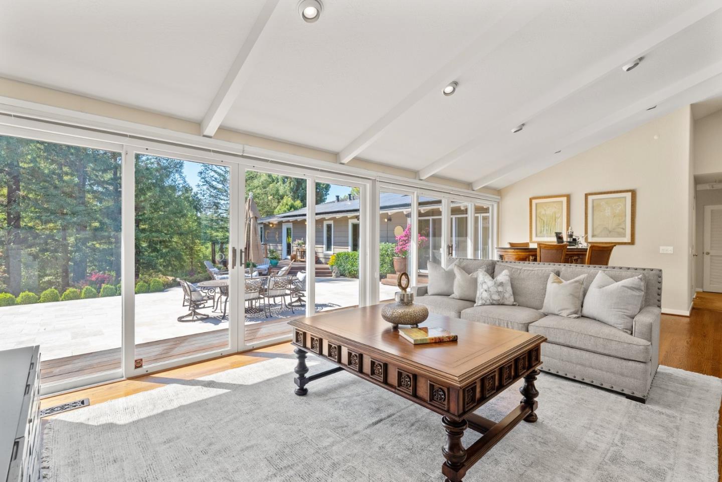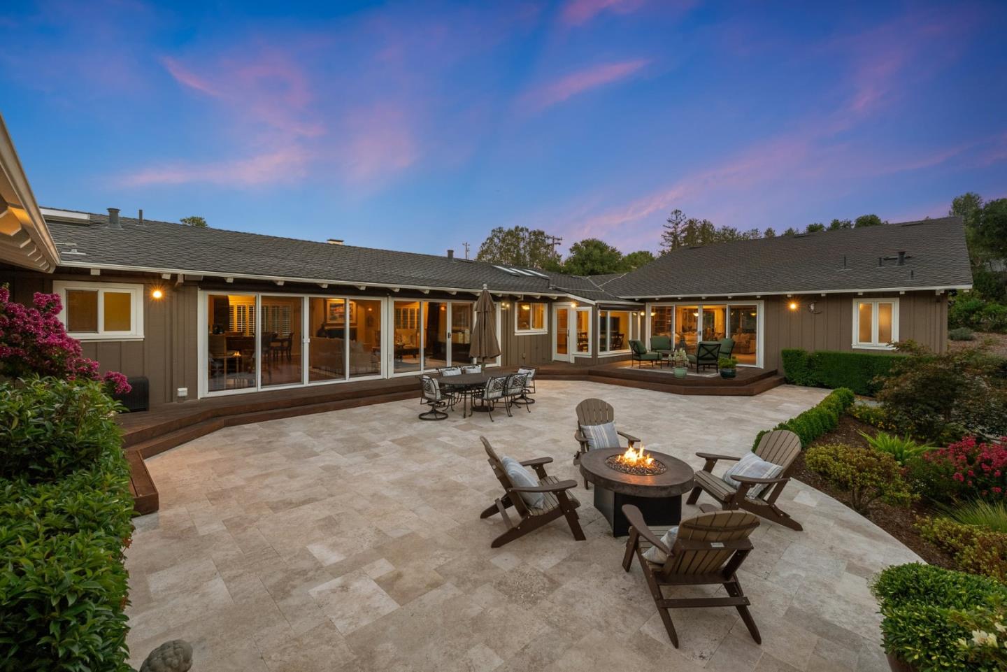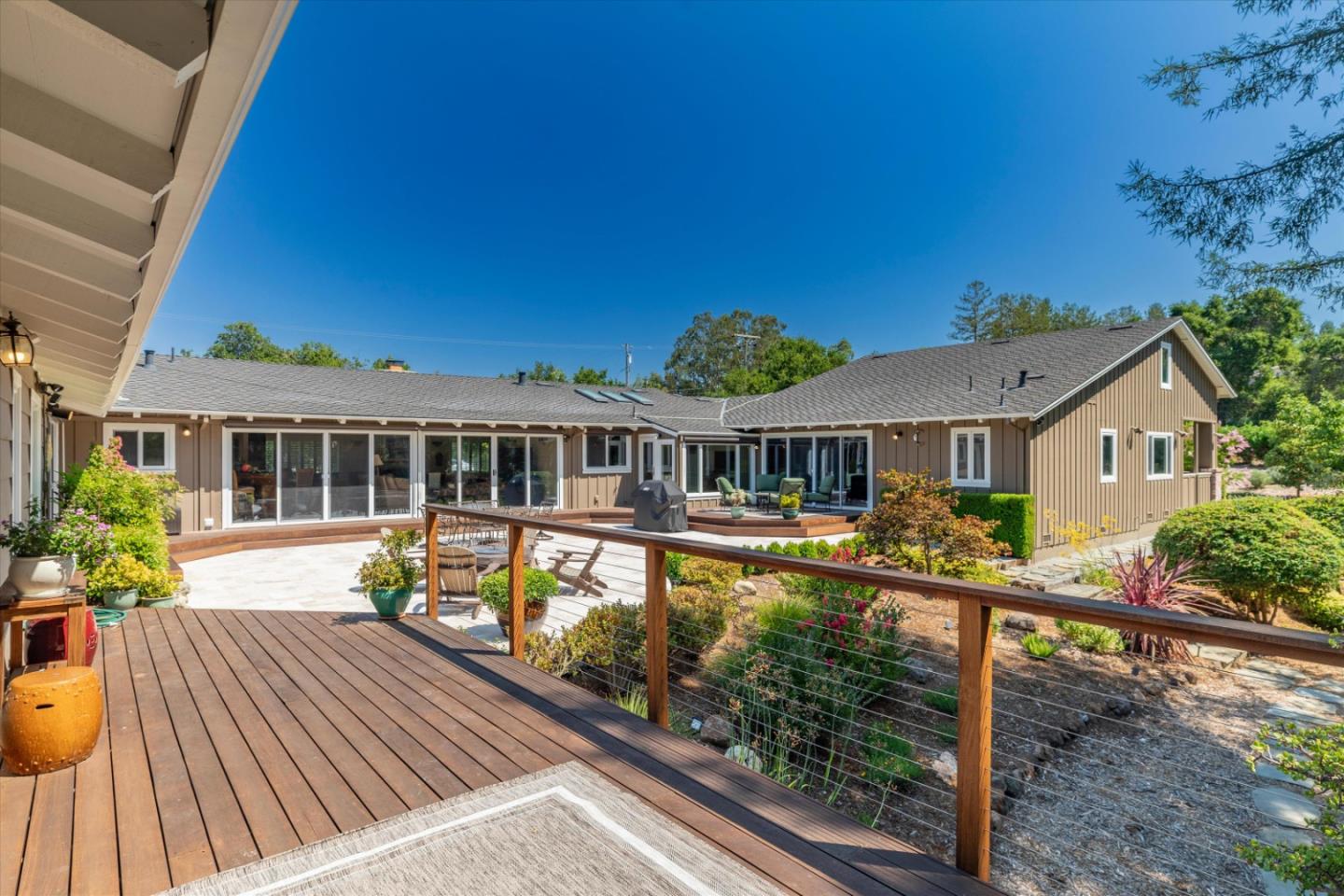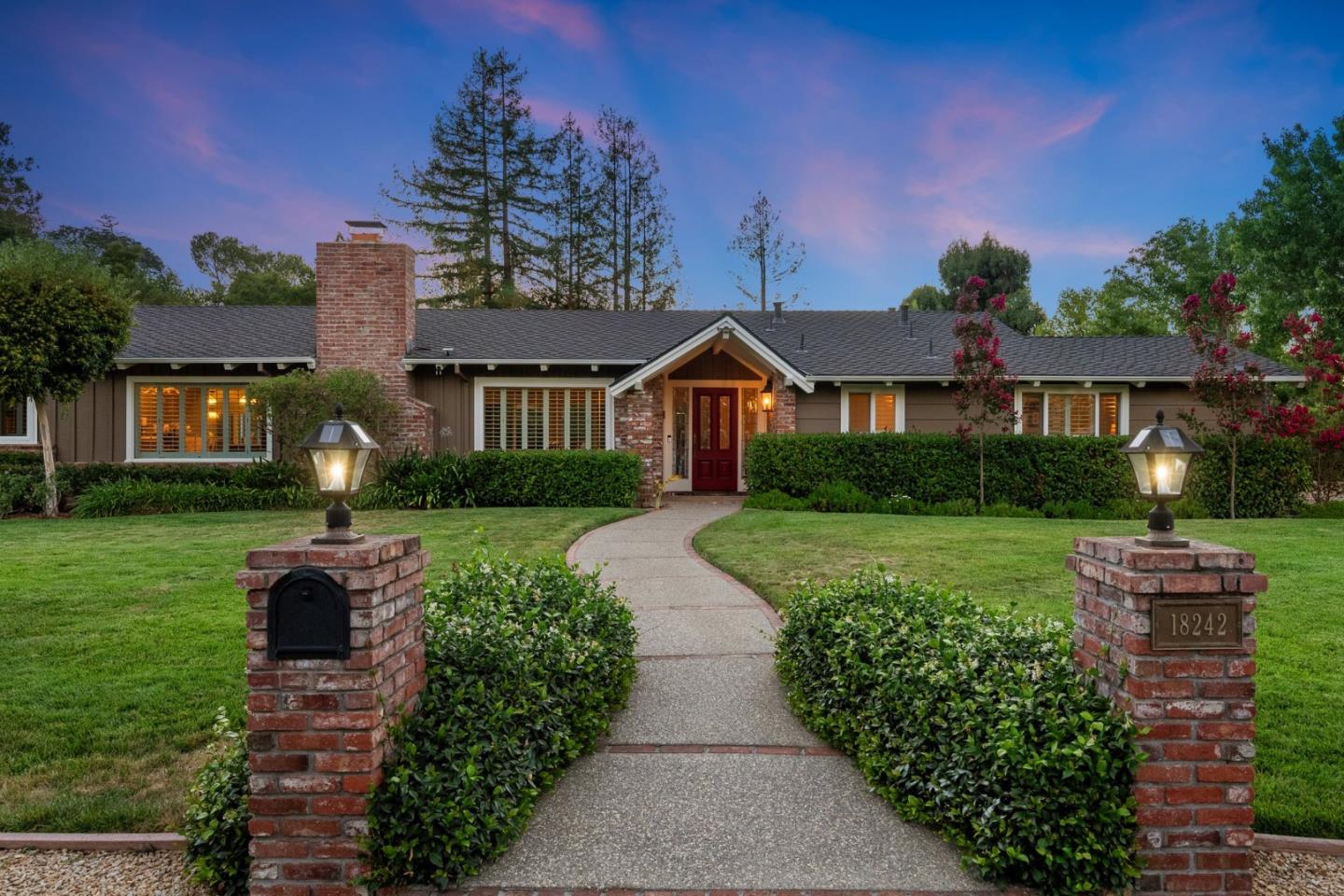 Sprawling, single-story estate in pristine Monte Sereno location! Superior quality, timeless charm & thoughtful floor plan enjoys volume ceilings & generous picture windows-views of pristine gardens & lg entertaining spaces & beyond on mostly level lot. Welcoming front porch opens to fantastic great room w/ formal dining area anchored by handsome fireplace. Wall of windows offering spectacular views & multiple sliders for exterior access-ultimate indoor/outdoor living experience. Gourmet kitchen ready for culinary enthusiast- large center island w/ sink, prof grade appliances, dining nook. Expansive family rm, attached game rm & private ensuite bedroom. Right wing w/ primary suite w/ attached retreat, lg walk-in closet & dressing area. Spa-inspired bath w/ soaking tub, separate steam shower. 3 additional bedrooms share generous hall bath. Walk out lower level of 500+ sqft, used as office w/ built-in desk, full bath & private entrance. Meticulously landscaped, park-like grounds are built to enjoy! Meandering stone paths pass thru landscape w/ ample open space, generous lawns & open areas. Small redwood grove shades dry creek bed. Premier quiet location w/ easy access to Hwy 9, 85 & 17. Exceptional opportunity - Close to dwntwn LG & Saratoga Village- plus top-rated LG Schools!
