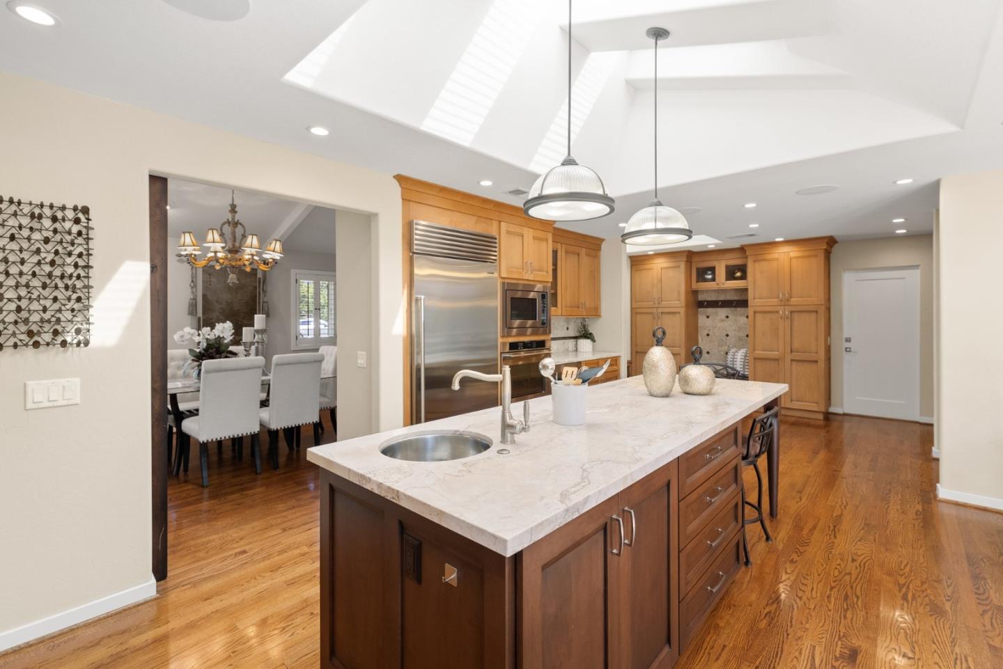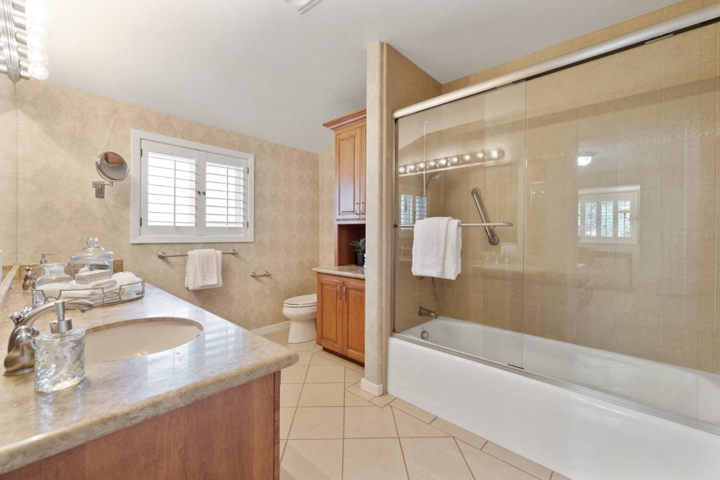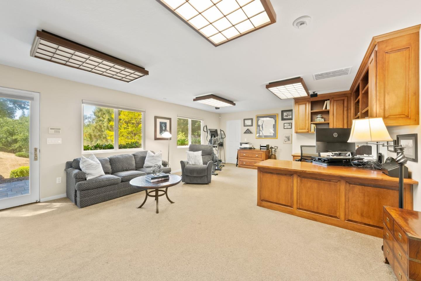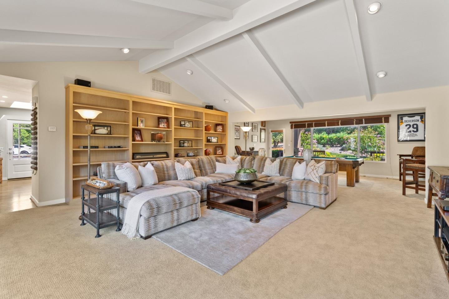 Sprawling, single-story estate in pristine Monte Sereno location! Superior quality, timeless charm & thoughtful floor plan enjoys volume ceilings & generous picture windows-views of pristine gardens & lg entertaining spaces & beyond on mostly level lot. Welcoming front porch opens to fantastic great room w/ formal dining area anchored by handsome fireplace. Wall of windows offering spectacular views & multiple sliders for exterior access-ultimate indoor/outdoor living experience. Gourmet kitchen ready for culinary enthusiast- large center island w/ sink, prof grade appliances, dining nook. Expansive family rm, attached game rm & private ensuite bedroom. Right wing w/ primary suite w/ attached retreat, lg walk-in closet & dressing area. Spa-inspired bath w/ soaking tub, separate steam shower. 3 additional bedrooms share generous hall bath. Walk out lower level of 500+ sqft, used as office w/ built-in desk, full bath & private entrance. Meticulously landscaped, park-like grounds are built to enjoy! Meandering stone paths pass thru landscape w/ ample open space, generous lawns & open areas. Small redwood grove shades dry creek bed. Premier quiet location w/ easy access to Hwy 9, 85 & 17. Exceptional opportunity - Close to dwntwn LG & Saratoga Village- plus top-rated LG Schools!