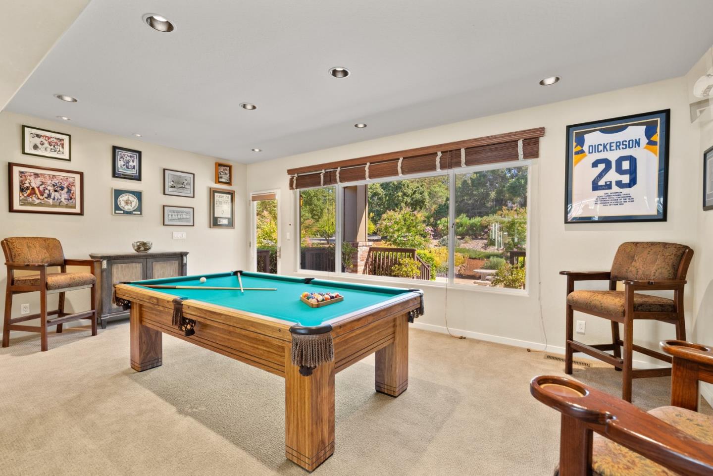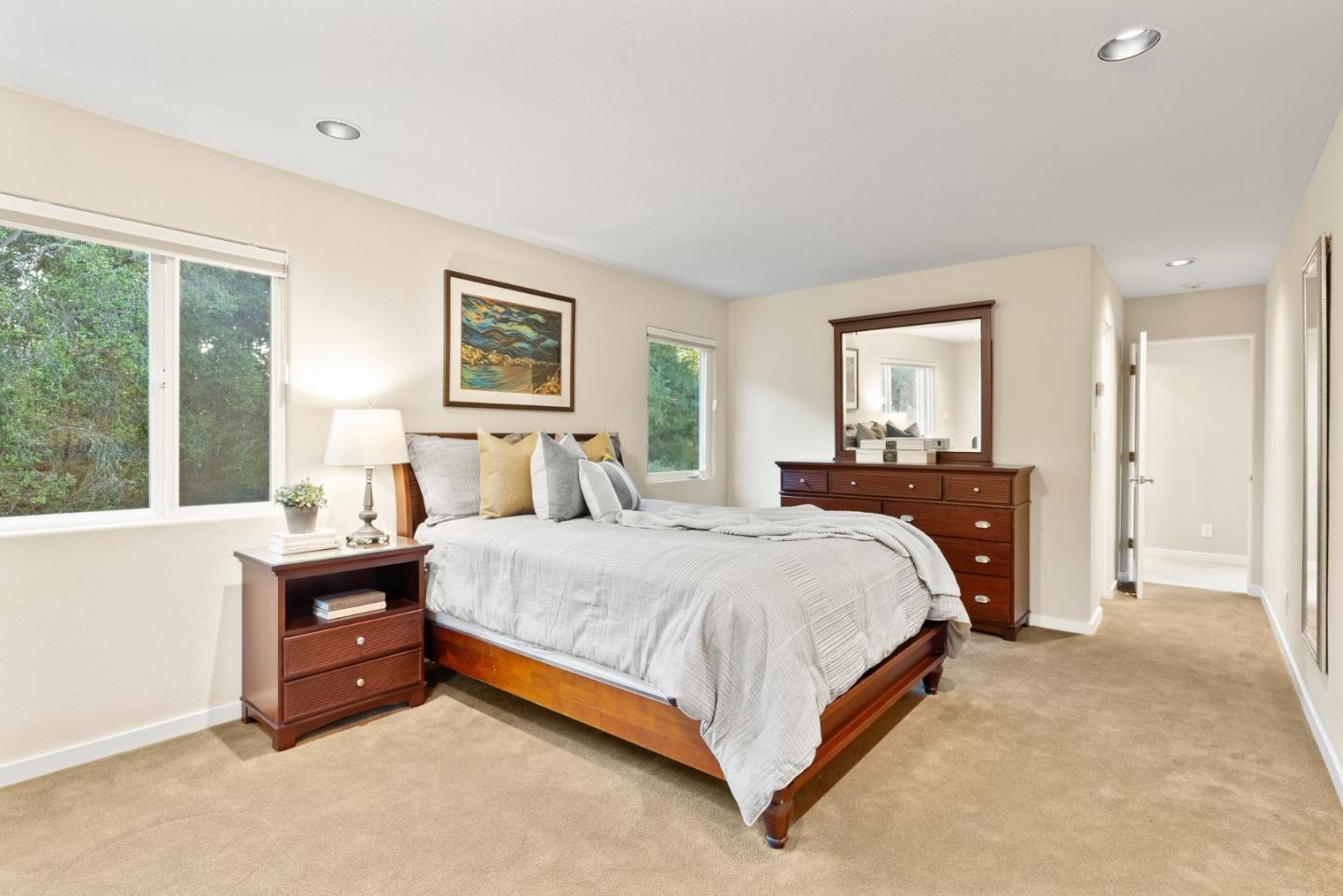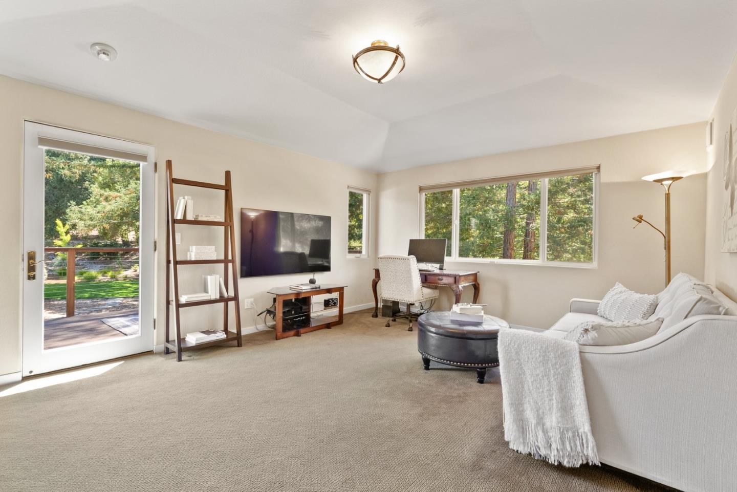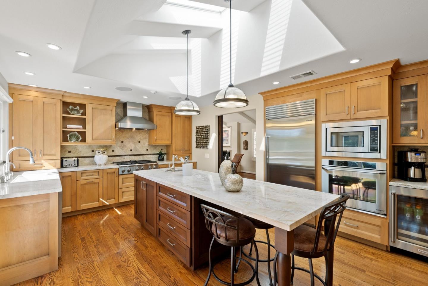 Sprawling, single-story estate in pristine Monte Sereno location! Superior quality, timeless charm & thoughtful floor plan enjoys volume ceilings & generous picture windows-views of pristine gardens & lg entertaining spaces & beyond on mostly level lot. Welcoming front porch opens to fantastic great room w/ formal dining area anchored by handsome fireplace. Wall of windows offering spectacular views & multiple sliders for exterior access-ultimate indoor/outdoor living experience. Gourmet kitchen ready for culinary enthusiast- large center island w/ sink, prof grade appliances, dining nook. Expansive family rm, attached game rm & private ensuite bedroom. Right wing w/ primary suite w/ attached retreat, lg walk-in closet & dressing area. Spa-inspired bath w/ soaking tub, separate steam shower. 3 additional bedrooms share generous hall bath. Walk out lower level of 500+ sqft, used as office w/ built-in desk, full bath & private entrance. Meticulously landscaped, park-like grounds are built to enjoy! Meandering stone paths pass thru landscape w/ ample open space, generous lawns & open areas. Small redwood grove shades dry creek bed. Premier quiet location w/ easy access to Hwy 9, 85 & 17. Exceptional opportunity - Close to dwntwn LG & Saratoga Village- plus top-rated LG Schools!