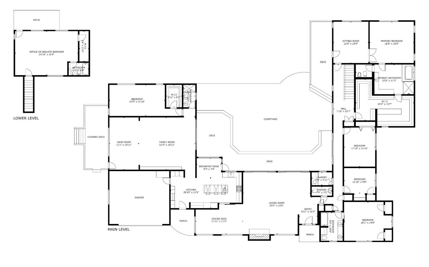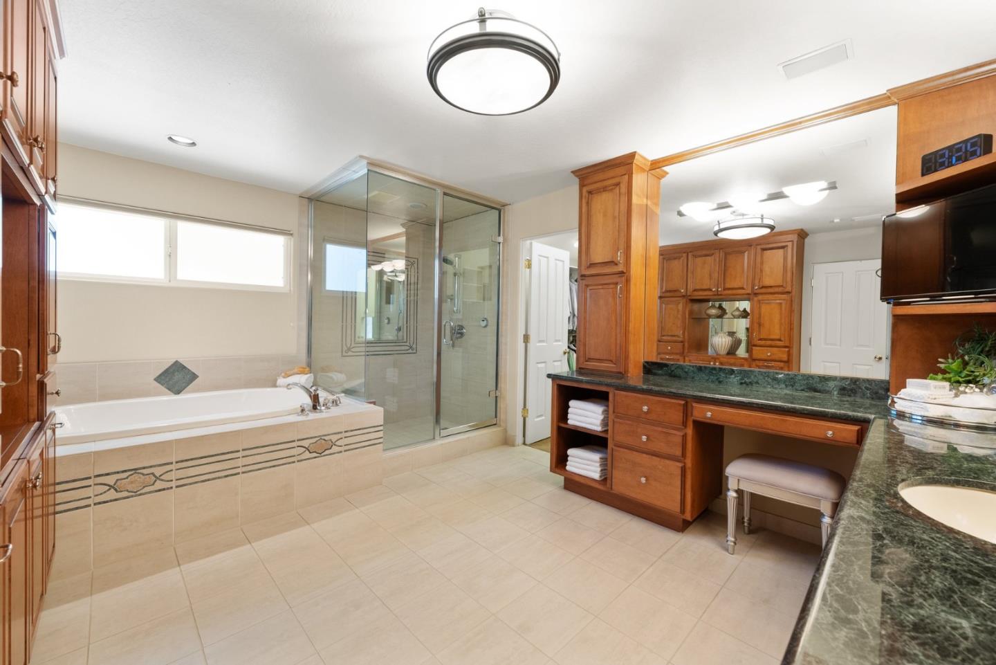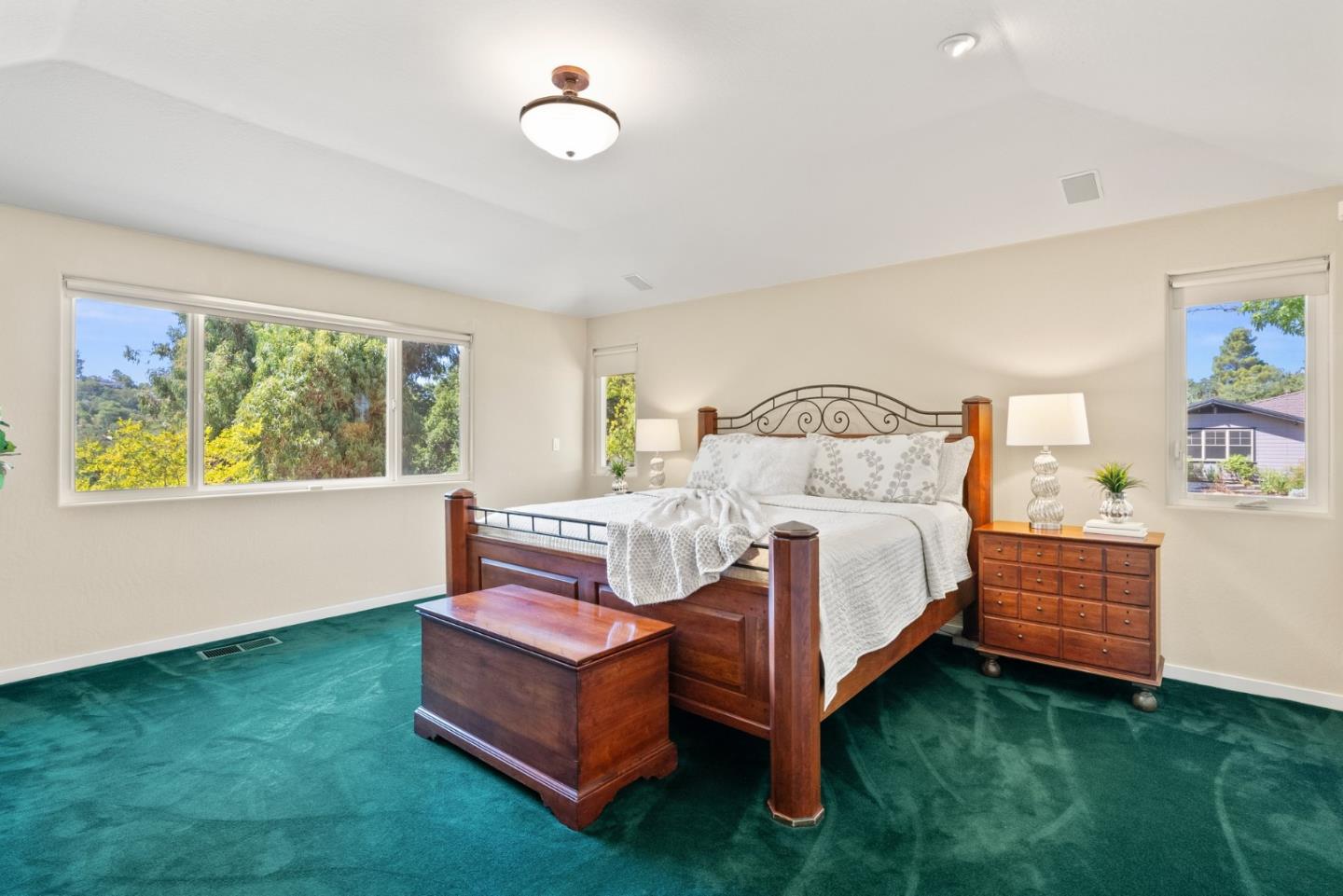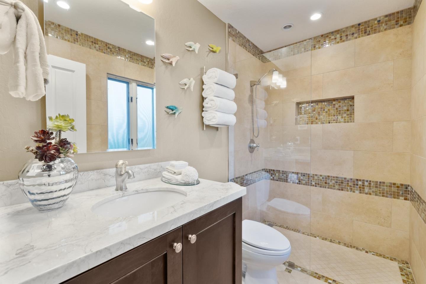 Sprawling, single-story estate in pristine Monte Sereno location! Superior quality, timeless charm & thoughtful floor plan enjoys volume ceilings & generous picture windows-views of pristine gardens & lg entertaining spaces & beyond on mostly level lot. Welcoming front porch opens to fantastic great room w/ formal dining area anchored by handsome fireplace. Wall of windows offering spectacular views & multiple sliders for exterior access-ultimate indoor/outdoor living experience. Gourmet kitchen ready for culinary enthusiast- large center island w/ sink, prof grade appliances, dining nook. Expansive family rm, attached game rm & private ensuite bedroom. Right wing w/ primary suite w/ attached retreat, lg walk-in closet & dressing area. Spa-inspired bath w/ soaking tub, separate steam shower. 3 additional bedrooms share generous hall bath. Walk out lower level of 500+ sqft, used as office w/ built-in desk, full bath & private entrance. Meticulously landscaped, park-like grounds are built to enjoy! Meandering stone paths pass thru landscape w/ ample open space, generous lawns & open areas. Small redwood grove shades dry creek bed. Premier quiet location w/ easy access to Hwy 9, 85 & 17. Exceptional opportunity - Close to dwntwn LG & Saratoga Village- plus top-rated LG Schools!