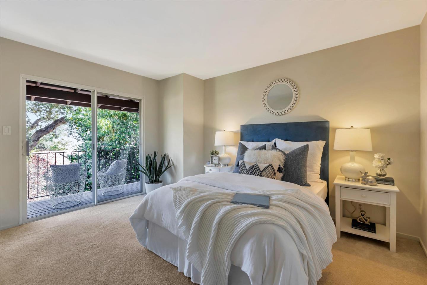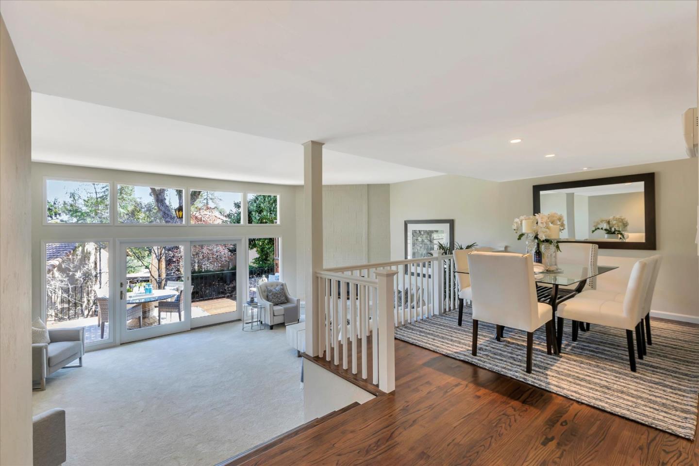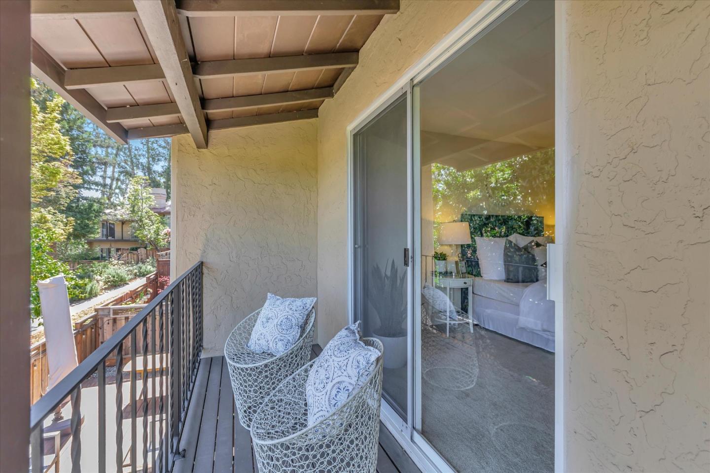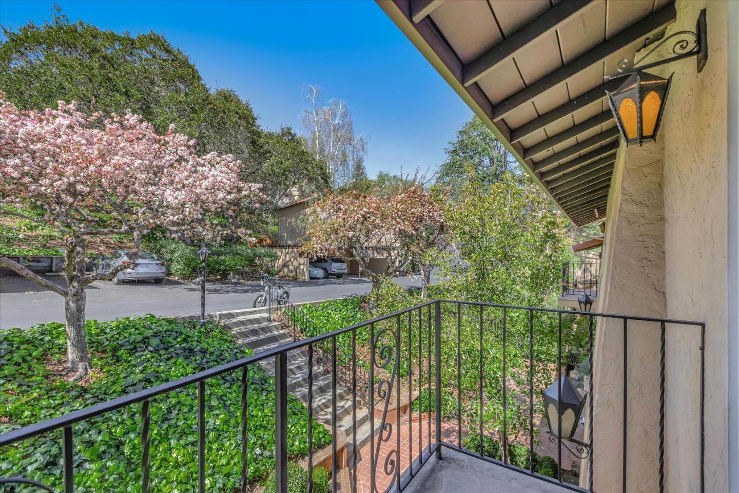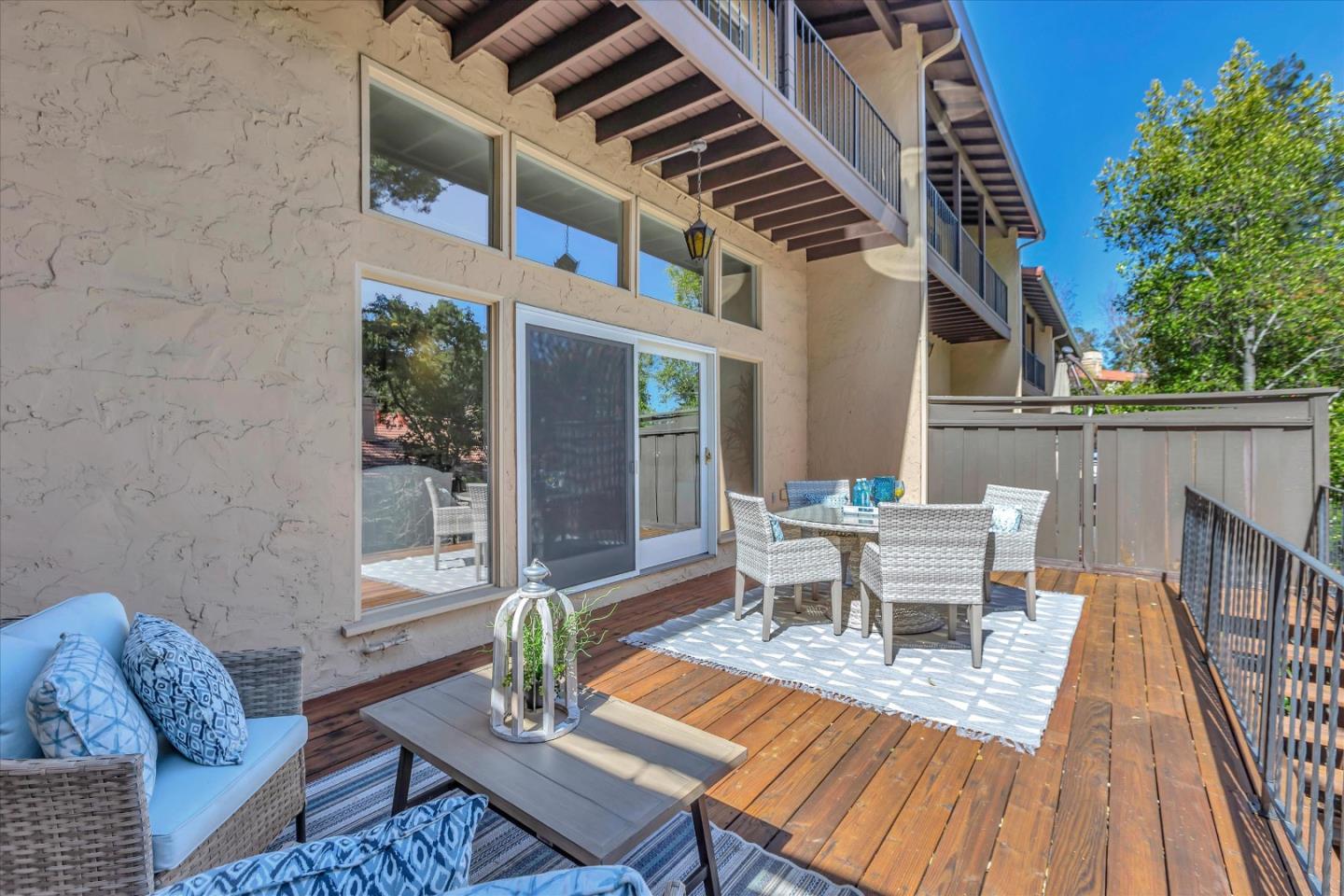 Glenridge neighborhood Rancho de Los Gatos townhome! This charming unit has an exceptional location within the community, and just a quick stroll away from nearby shopping & dining. Freshly painted interior, new kitchen appliances, beautiful hardwood floors & new carpet! Wonderful volume ceilings & large skylight fills the space w/ abundance of natural light. A very nice floorplan w/ large living spaces, formal dining room with built-in cabinetry, spacious kit w/ breakfast nook, 3 beds upstairs & inside laundry. A wall of windows in living room & gas fireplace is a great space for entertaining & enjoys views of trees & foothills from floor-to-ceiling windows w/ a large slider opening to spacious deck. Generous primary suite features a private balcony & updated bath boasting lovely tile floors, dual vanity, quartz counter & generous stall shower. Two guest bedrooms share hall bath & enjoy large balcony overlooking the front landscape. HOA fee covers water, upgraded cable & garbage. 2 carport spaces are just opposite unit w/ extra storage. Discover the perfect blend of modern convenience, stylish updates, and a prime location in this exquisite townhome community. A great commute location, easy access to highways 85 and 17. Top LG Schools!