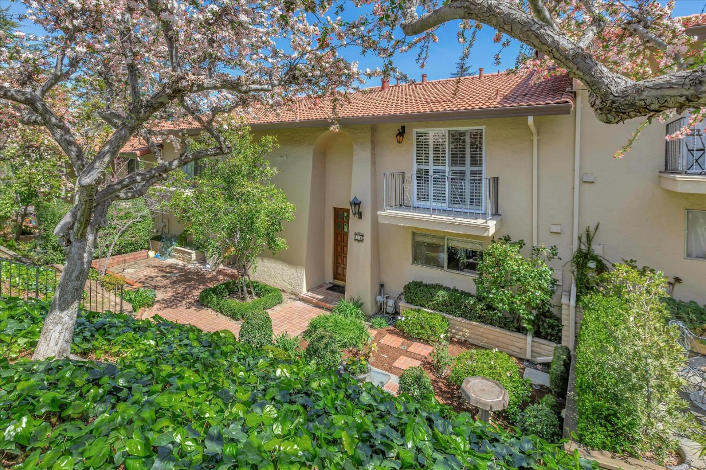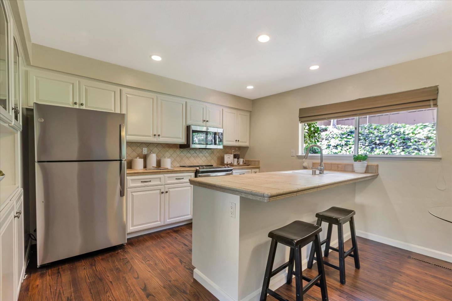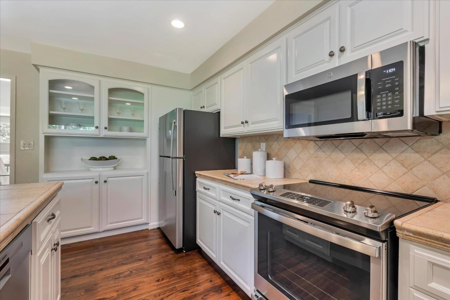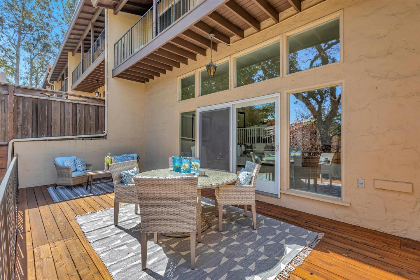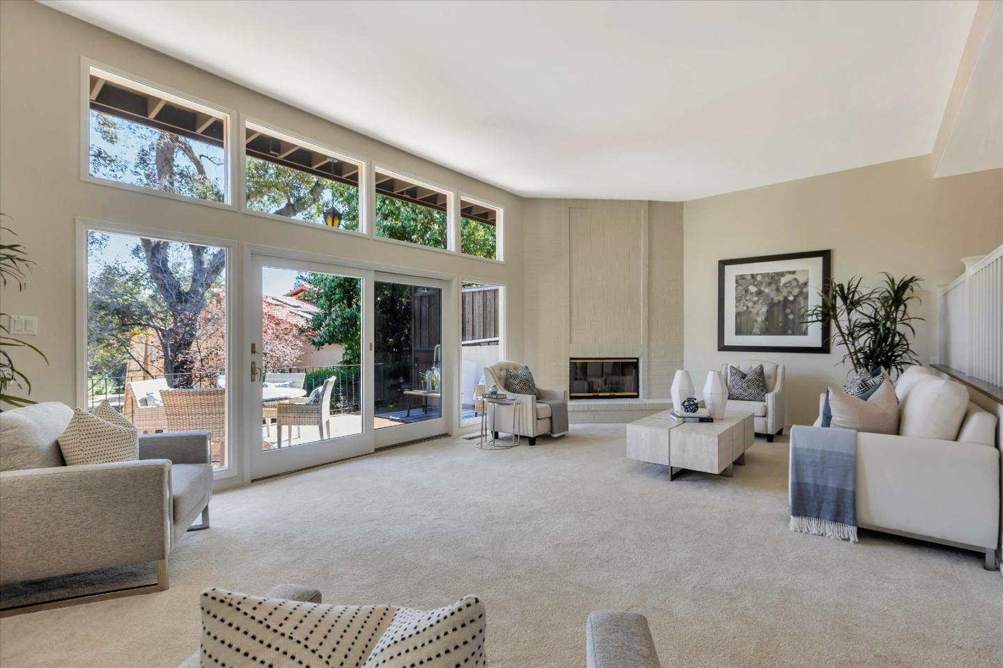 Glenridge neighborhood Rancho de Los Gatos townhome! This charming unit has an exceptional location within the community, and just a quick stroll away from nearby shopping & dining. Freshly painted interior, new kitchen appliances, beautiful hardwood floors & new carpet! Wonderful volume ceilings & large skylight fills the space w/ abundance of natural light. A very nice floorplan w/ large living spaces, formal dining room with built-in cabinetry, spacious kit w/ breakfast nook, 3 beds upstairs & inside laundry. A wall of windows in living room & gas fireplace is a great space for entertaining & enjoys views of trees & foothills from floor-to-ceiling windows w/ a large slider opening to spacious deck. Generous primary suite features a private balcony & updated bath boasting lovely tile floors, dual vanity, quartz counter & generous stall shower. Two guest bedrooms share hall bath & enjoy large balcony overlooking the front landscape. HOA fee covers water, upgraded cable & garbage. 2 carport spaces are just opposite unit w/ extra storage. Discover the perfect blend of modern convenience, stylish updates, and a prime location in this exquisite townhome community. A great commute location, easy access to highways 85 and 17. Top LG Schools!