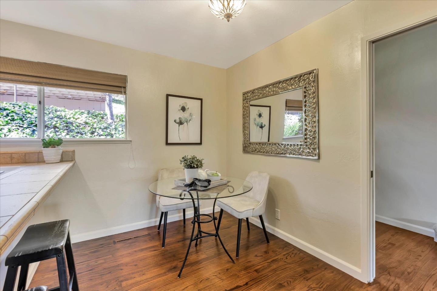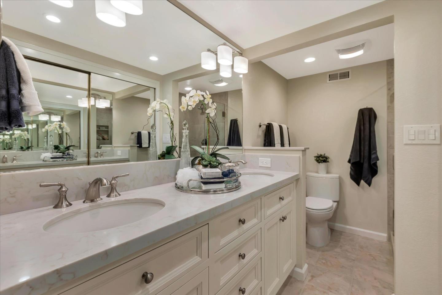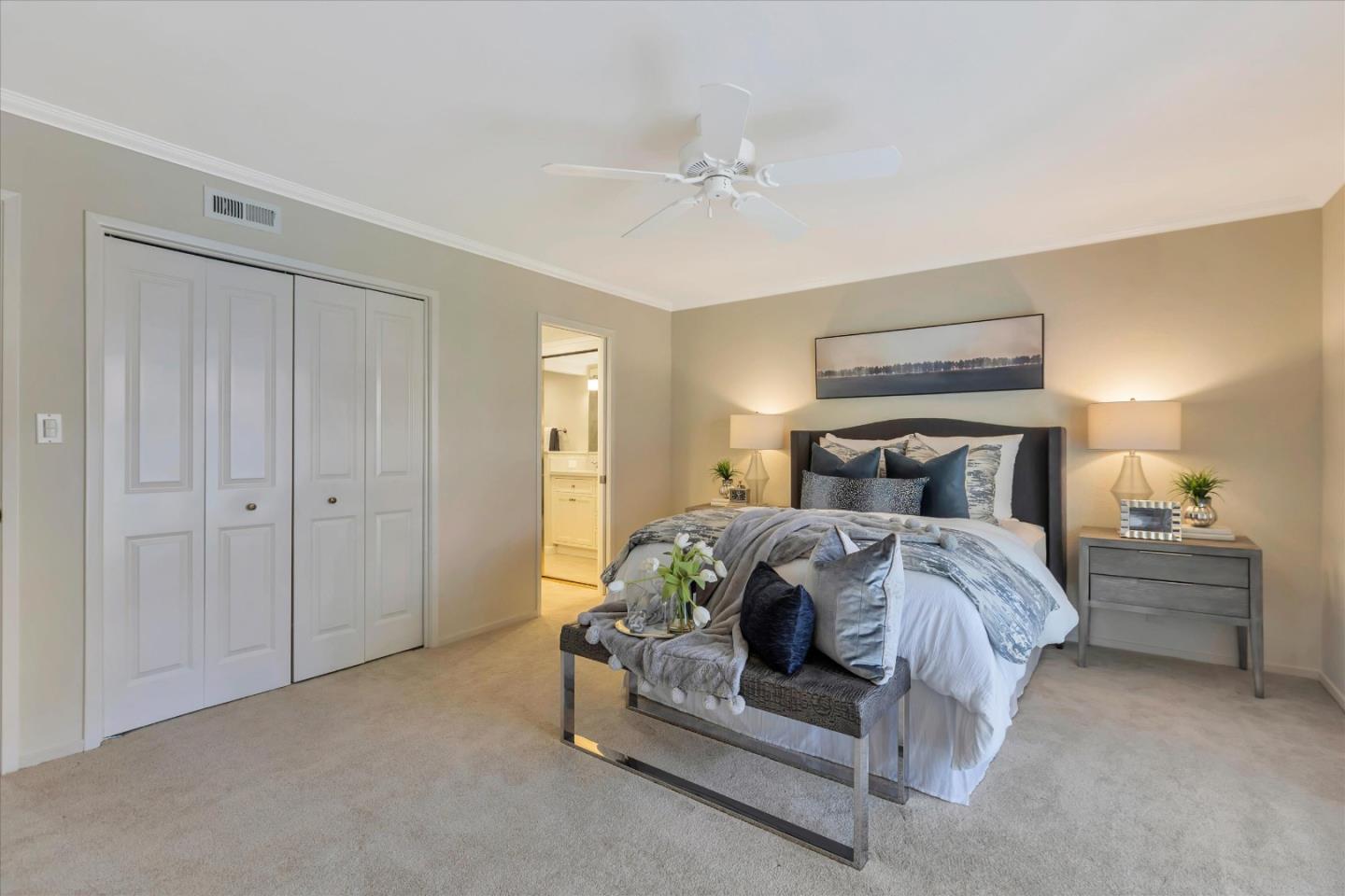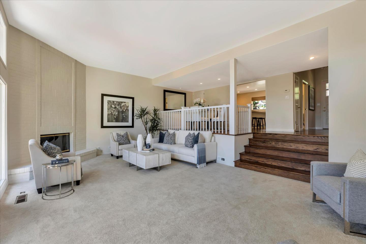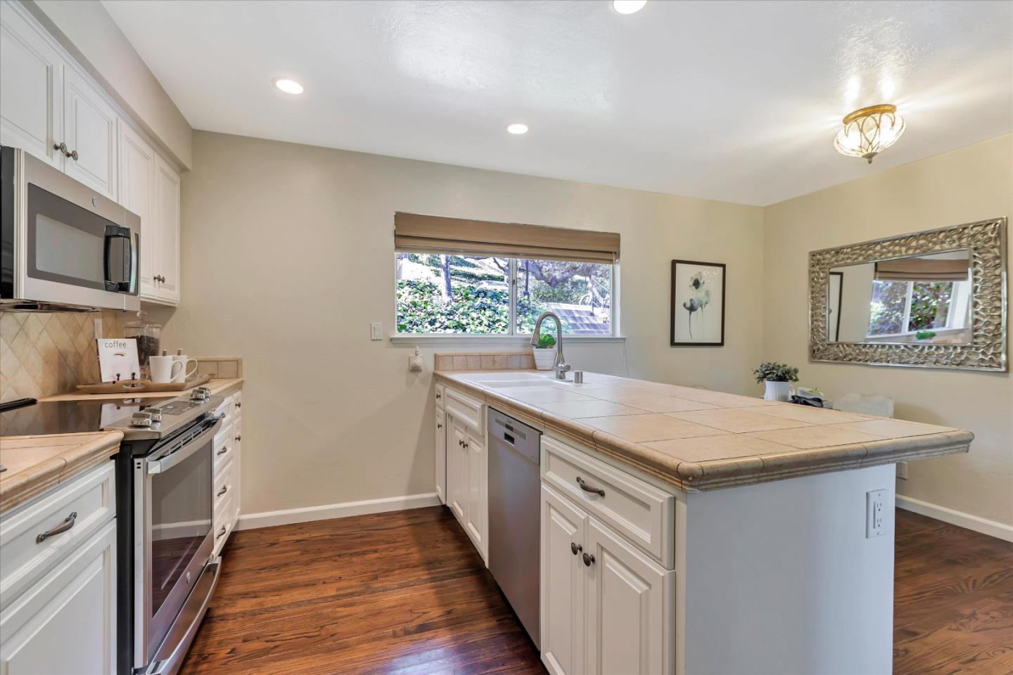 Glenridge neighborhood Rancho de Los Gatos townhome! This charming unit has an exceptional location within the community, and just a quick stroll away from nearby shopping & dining. Freshly painted interior, new kitchen appliances, beautiful hardwood floors & new carpet! Wonderful volume ceilings & large skylight fills the space w/ abundance of natural light. A very nice floorplan w/ large living spaces, formal dining room with built-in cabinetry, spacious kit w/ breakfast nook, 3 beds upstairs & inside laundry. A wall of windows in living room & gas fireplace is a great space for entertaining & enjoys views of trees & foothills from floor-to-ceiling windows w/ a large slider opening to spacious deck. Generous primary suite features a private balcony & updated bath boasting lovely tile floors, dual vanity, quartz counter & generous stall shower. Two guest bedrooms share hall bath & enjoy large balcony overlooking the front landscape. HOA fee covers water, upgraded cable & garbage. 2 carport spaces are just opposite unit w/ extra storage. Discover the perfect blend of modern convenience, stylish updates, and a prime location in this exquisite townhome community. A great commute location, easy access to highways 85 and 17. Top LG Schools!
