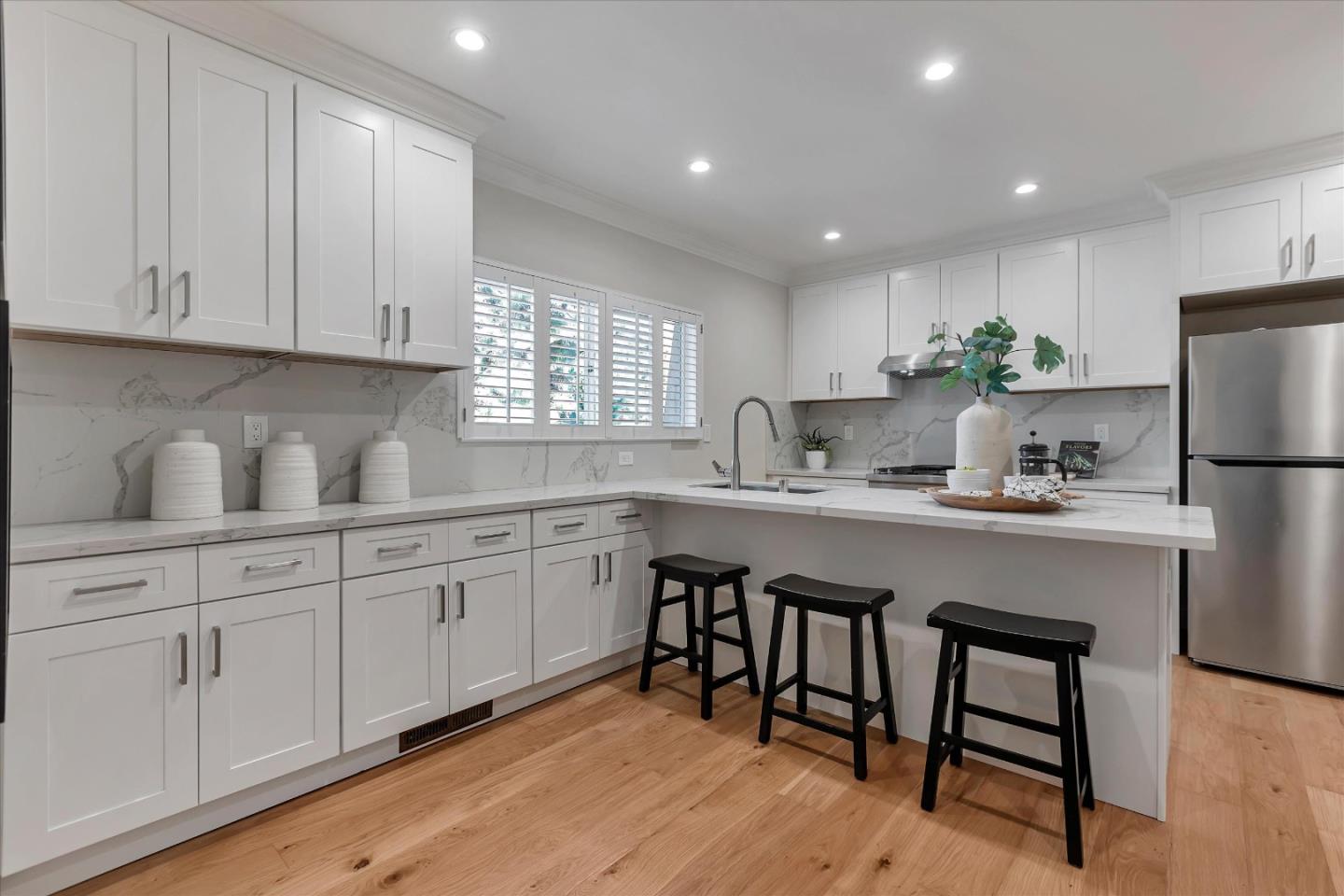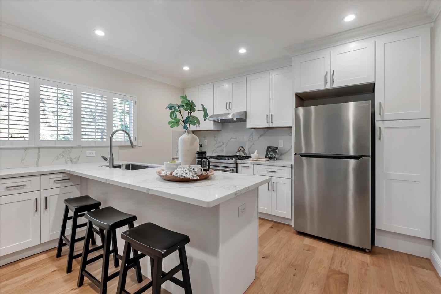 Wonderful end-unit in gorgeous Glenridge neighborhood, quick stroll to dwntwn LG & easy access to Hwy 9. Top LG schools; Daves Elementary, Fisher Middle, Los Gatos High. Prime location in community w/ new carpet, fresh interior paint, gorgeous new hardwood floors, new kitchen cabinets w/ quartz slab counters, a breakfast bar for casual dining. 3 bedrooms upstairs & updated baths! Primary suite has private balcony. Open floor plan w/ generous living space. Lovely spanish style surround on fireplace w/ reclaimed wood mantel. Large dining area to accommodates family & guests. Wall of windows in great room opens to lovely patio area. 2 private community pools, 2 covered parking spaces w/ extra storage. Enjoy all that downtown LG has to offer! Beyond the Common Area and Community Amenities, the HOA Covers the following for the unit: Water, Upgraded Internet, Cable, Garbage, Roof, Exterior Maintenance and exterior insurance - all are great savings for owners!