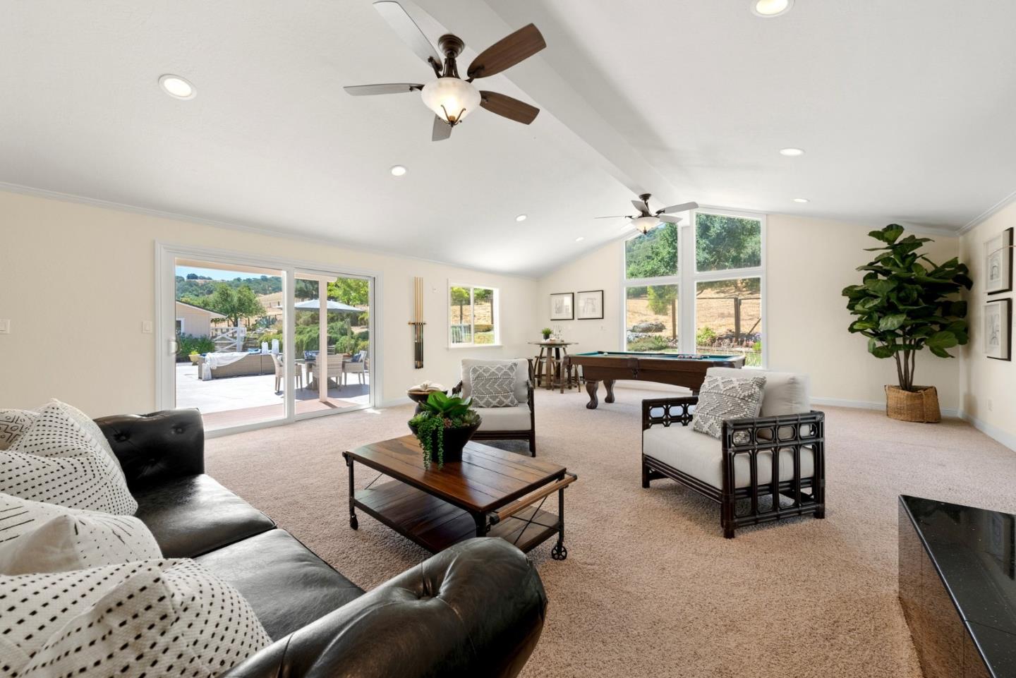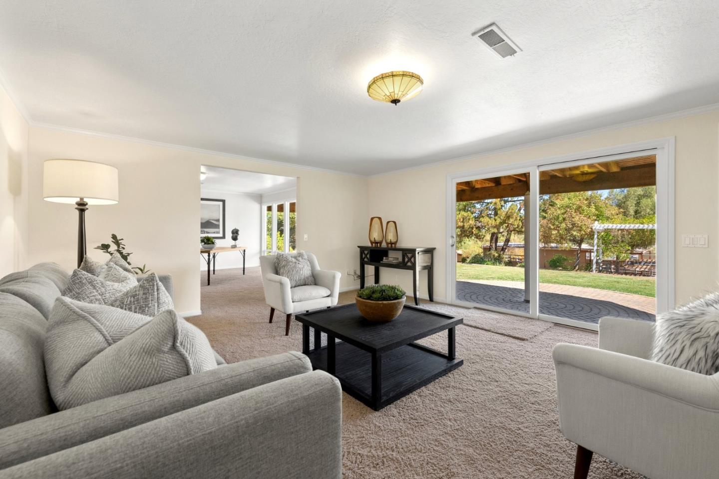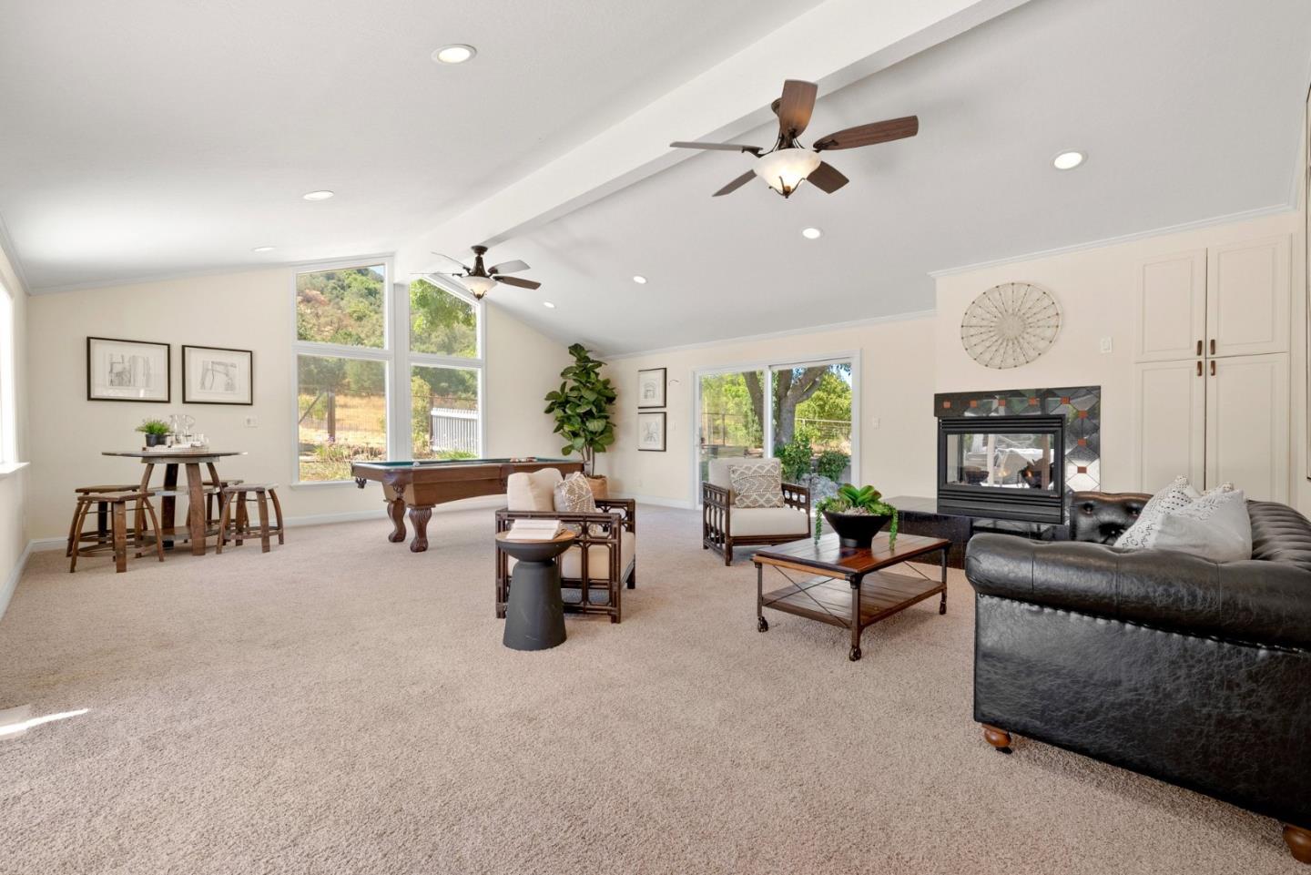 Great price enhancement! Check the sqft & lot size! Wow! A great Almaden Valley country ranch home situated on just under 1 acre, mostly flat lot. Surrounded by mountain vistas & rolling hills. Rural living yet so close to city life for an easy commute. Natural light streams through large pic windows. Spacious rooms throughout with a thoughtful floorplan. Courtyard w/ composite deck leads to large front porch & opens to generous foyer overlooking living room w/vaulted, open beam ceiling, walls of windows to capture beautiful vistas. Kitchen has granite counters, island & dining nook w/ access to composite deck overlooking front landscape & big views! Spacious family room w/ fireplace & billiard space, windows to the rear of the property allow beautiful vistas of Quicksilver park. Main level includes 3 beds, including primary suite w/ slider to wrap around deck. Downstairs, large bonus rm, office room & bedroom + full bath. Great space for additional living unit. Covered patio & generous lawn area. horse paddocks & coral, chicken coop & multiple storage sheds for a country lifestyle. Separate 3 car detached garage. Quiet & serene in the country but close to all amenities & top Almaden Schools!