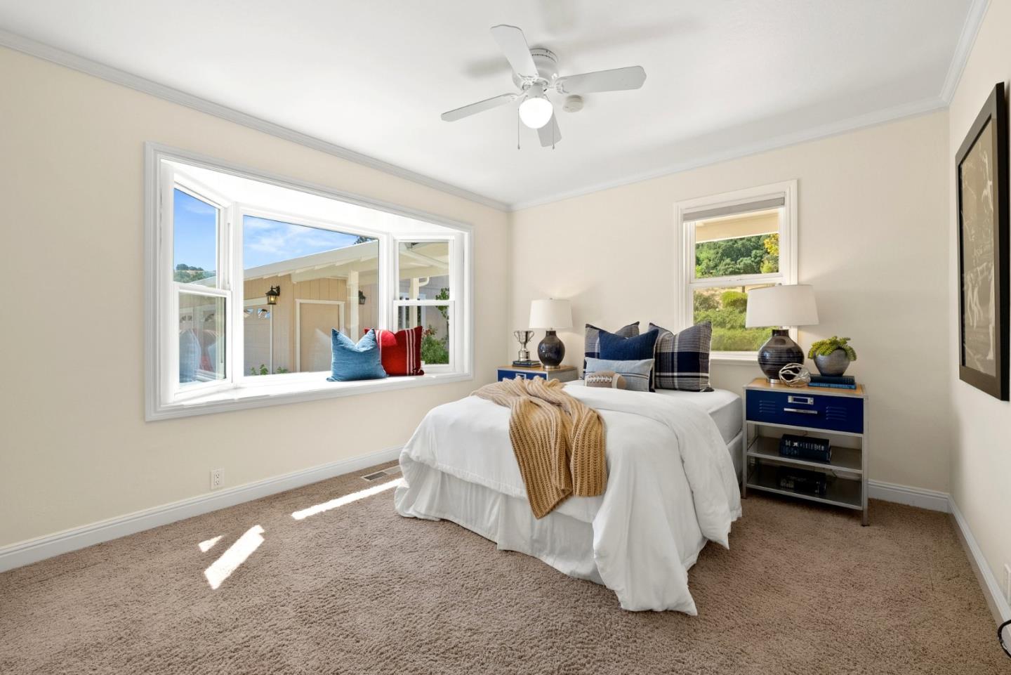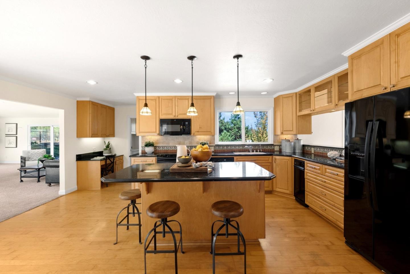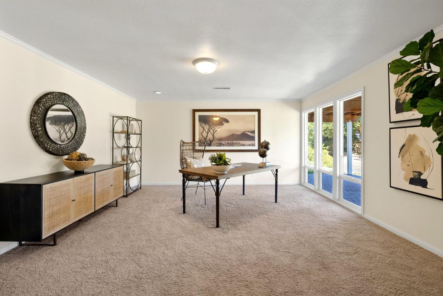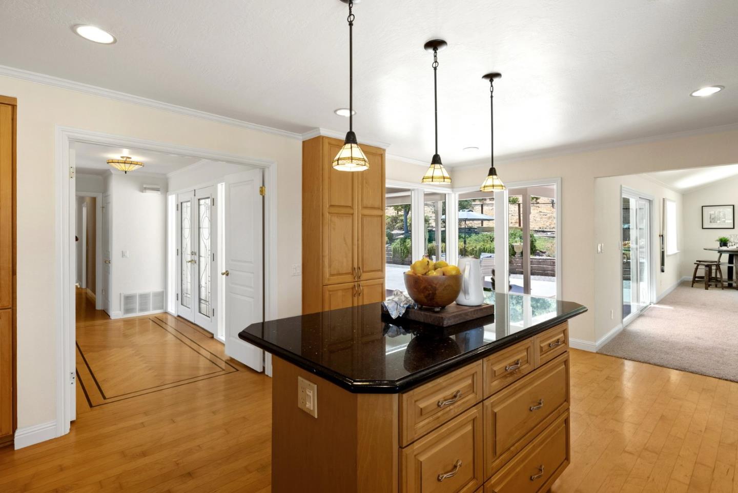 Great price enhancement! Check the sqft & lot size! Wow! A great Almaden Valley country ranch home situated on just under 1 acre, mostly flat lot. Surrounded by mountain vistas & rolling hills. Rural living yet so close to city life for an easy commute. Natural light streams through large pic windows. Spacious rooms throughout with a thoughtful floorplan. Courtyard w/ composite deck leads to large front porch & opens to generous foyer overlooking living room w/vaulted, open beam ceiling, walls of windows to capture beautiful vistas. Kitchen has granite counters, island & dining nook w/ access to composite deck overlooking front landscape & big views! Spacious family room w/ fireplace & billiard space, windows to the rear of the property allow beautiful vistas of Quicksilver park. Main level includes 3 beds, including primary suite w/ slider to wrap around deck. Downstairs, large bonus rm, office room & bedroom + full bath. Great space for additional living unit. Covered patio & generous lawn area. horse paddocks & coral, chicken coop & multiple storage sheds for a country lifestyle. Separate 3 car detached garage. Quiet & serene in the country but close to all amenities & top Almaden Schools!