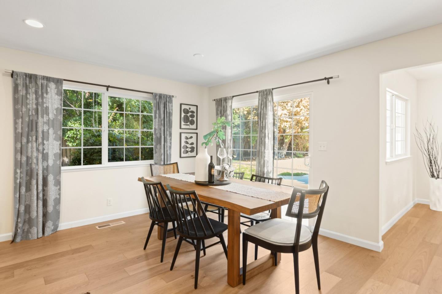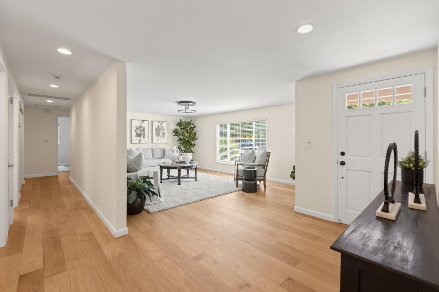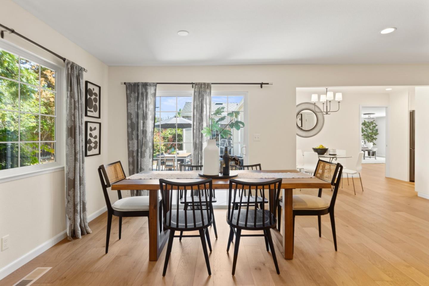 Recently updated, beautiful home set on a tree-lined street in the heart of Willow Glen. Close to neighborhood schools & parks, hwys 280/680, 880 & 87, & light rail station, the central location makes commuting & everyday living a breeze. New bright white paint & engineered hardwood flooring throughout. Spacious living room with large windows overlook the picturesque landscape. Kitchen features sleek black granite countertops, sparkling white cabinetry, & new, modern Samsung appliances, including an induction range. Dining nook with an elegant chandelier offers a view of the rear landscape. Family room, centered around a wood-burning fireplace, provides access to the rear yard through sliding glass doors. Three bedrooms include primary featuring two sliding closets & rear yard access through a sliding glass door. Expansive backyard is a private oasis w/ fruit trees, a lush lawn, and a paved patio area perfect for al fresco dining. A large fruit tree offers shade and beauty, while the additional paved flagstone patio provides more space for outdoor activities. Every detail has been thoughtfully considered to create a home that is both functional and stylish, ready to welcome you to a life of comfort and elegance.