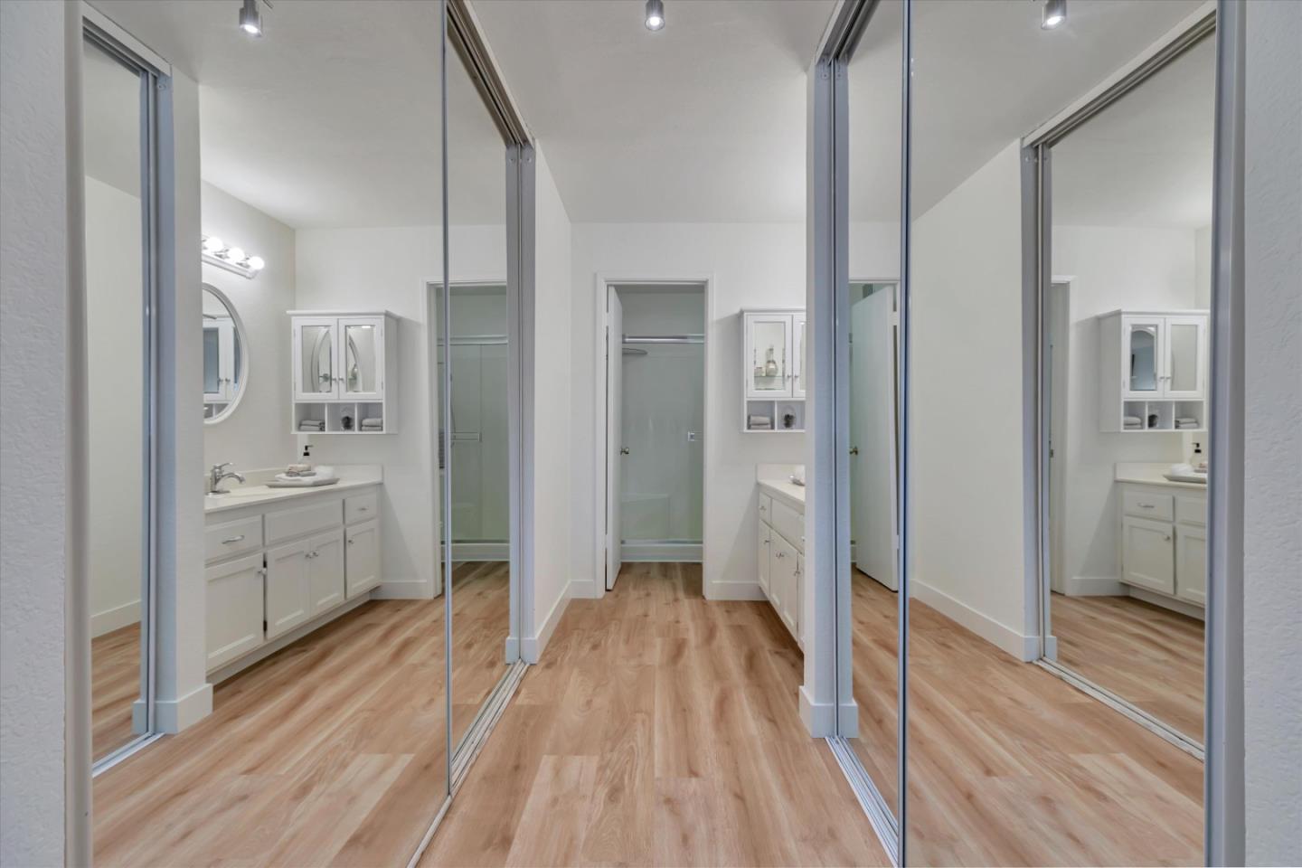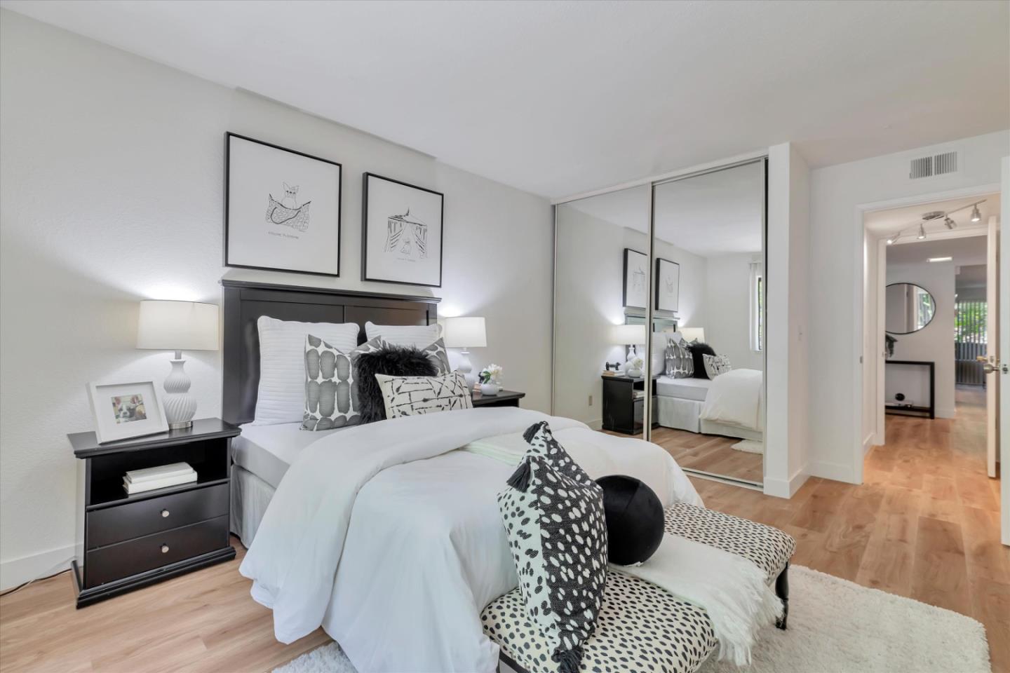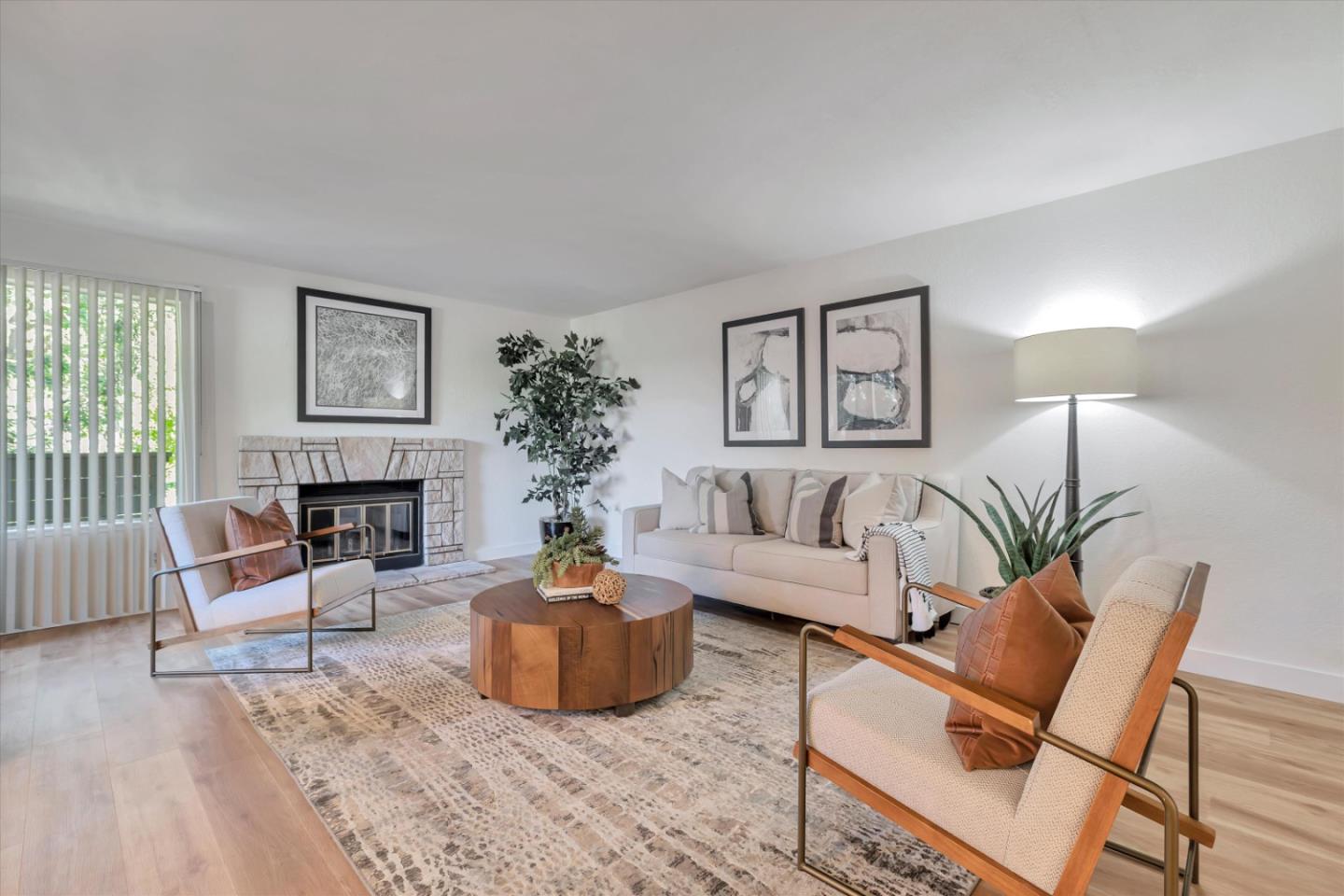 Discover the charm of this inviting second-story condo in a desirable Santa Teresa community! The two-bedroom, two-full-bathroom condo welcomes with freshly installed luxury stone polymer core flooring throughout. Step into the well-designed floor plan, featuring a generous great room complete with a brick surround fireplace, perfect for cozy evenings. Adjacent, you'll find a dining area ideal for enjoying meals with loved ones, with easy access to a spacious private balcony delightful spot for morning coffee or evening relaxation. The primary bedroom offers practicality and comfort with two closets equipped with organizers and its own private balcony, providing a serene retreat. Meanwhile, the second bedroom features a convenient closet and easy access to the hall bathroom, ensuring privacy and functionality for all occupants. Outside, enjoy the community's fantastic amenities, including a clubhouse, refreshing pool, soothing spa, and convenient BBQ grills. Embrace the serene atmosphere of the surrounding greenbelt, where mature trees create a welcoming environment for outdoor strolls and relaxation. Experience the warmth and convenience of Santa Teresa living in this charming condo, where comfort meets practicality in a delightful community setting.