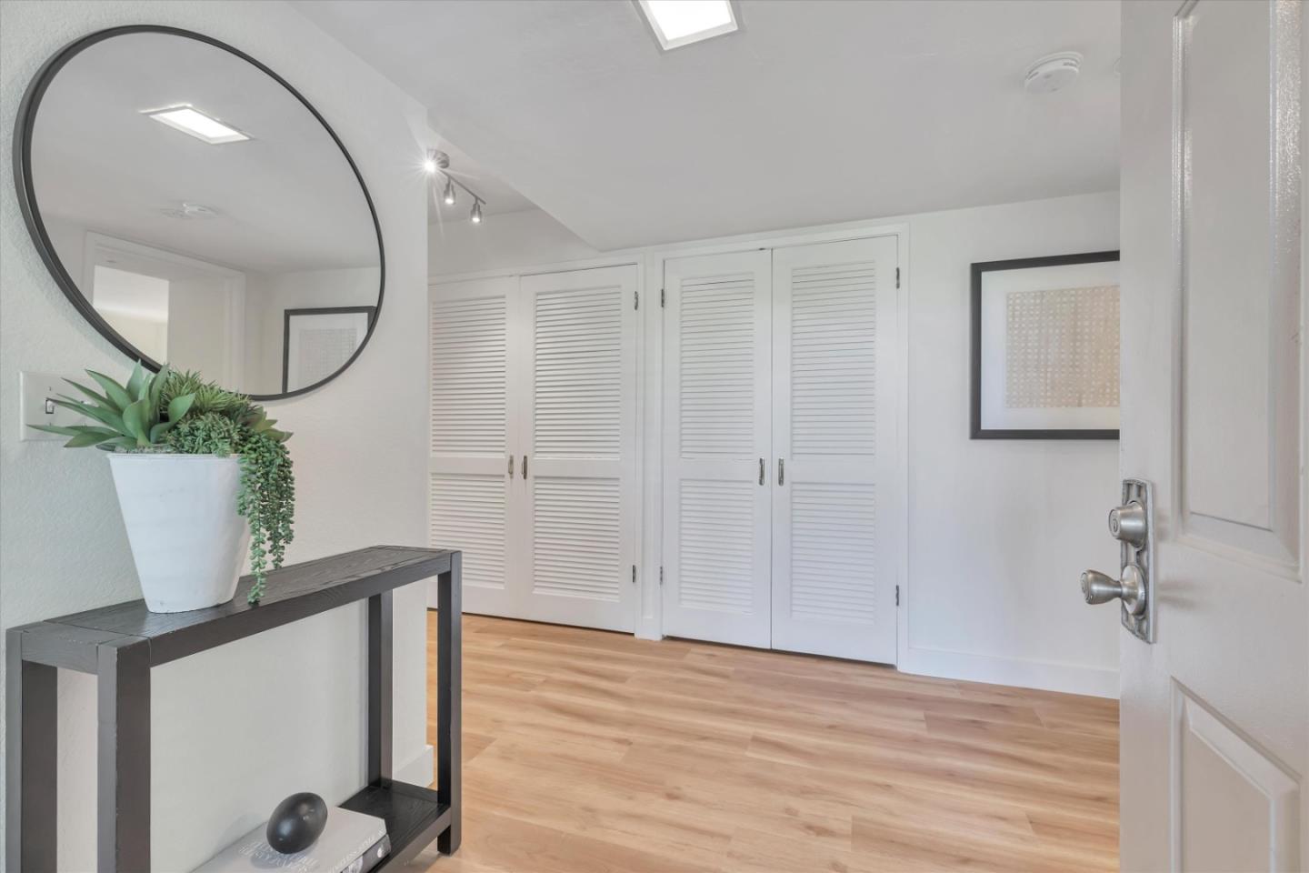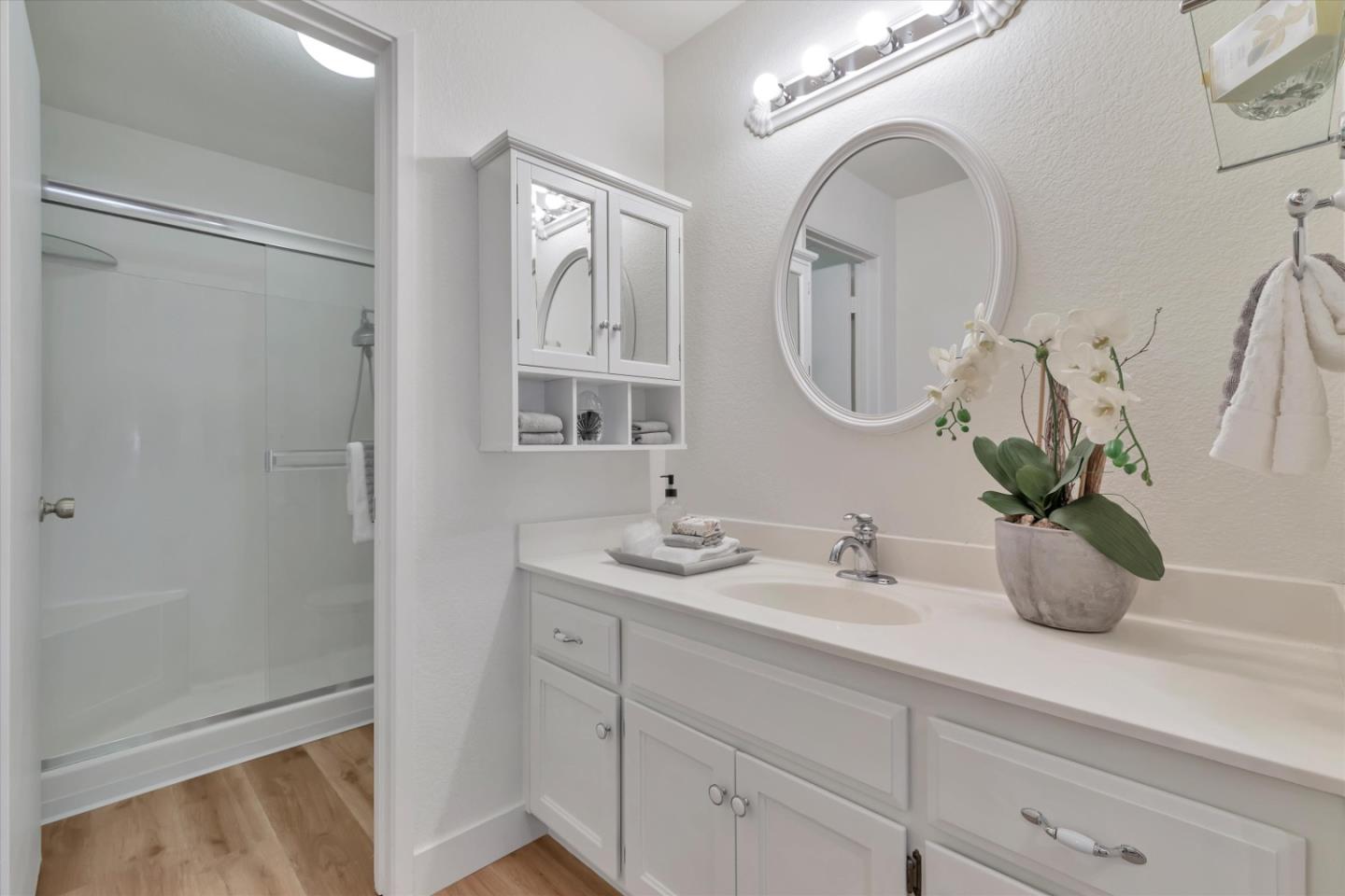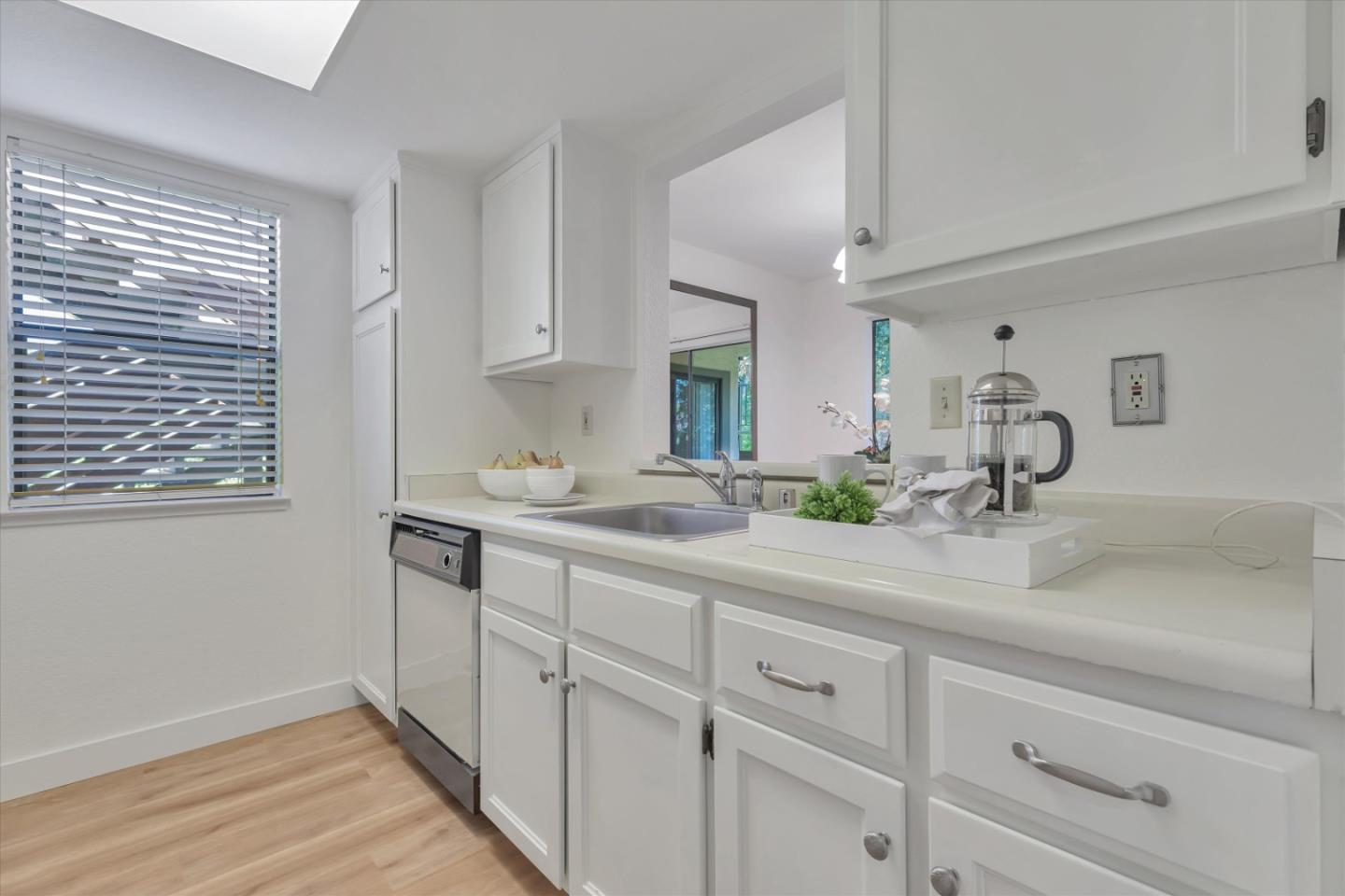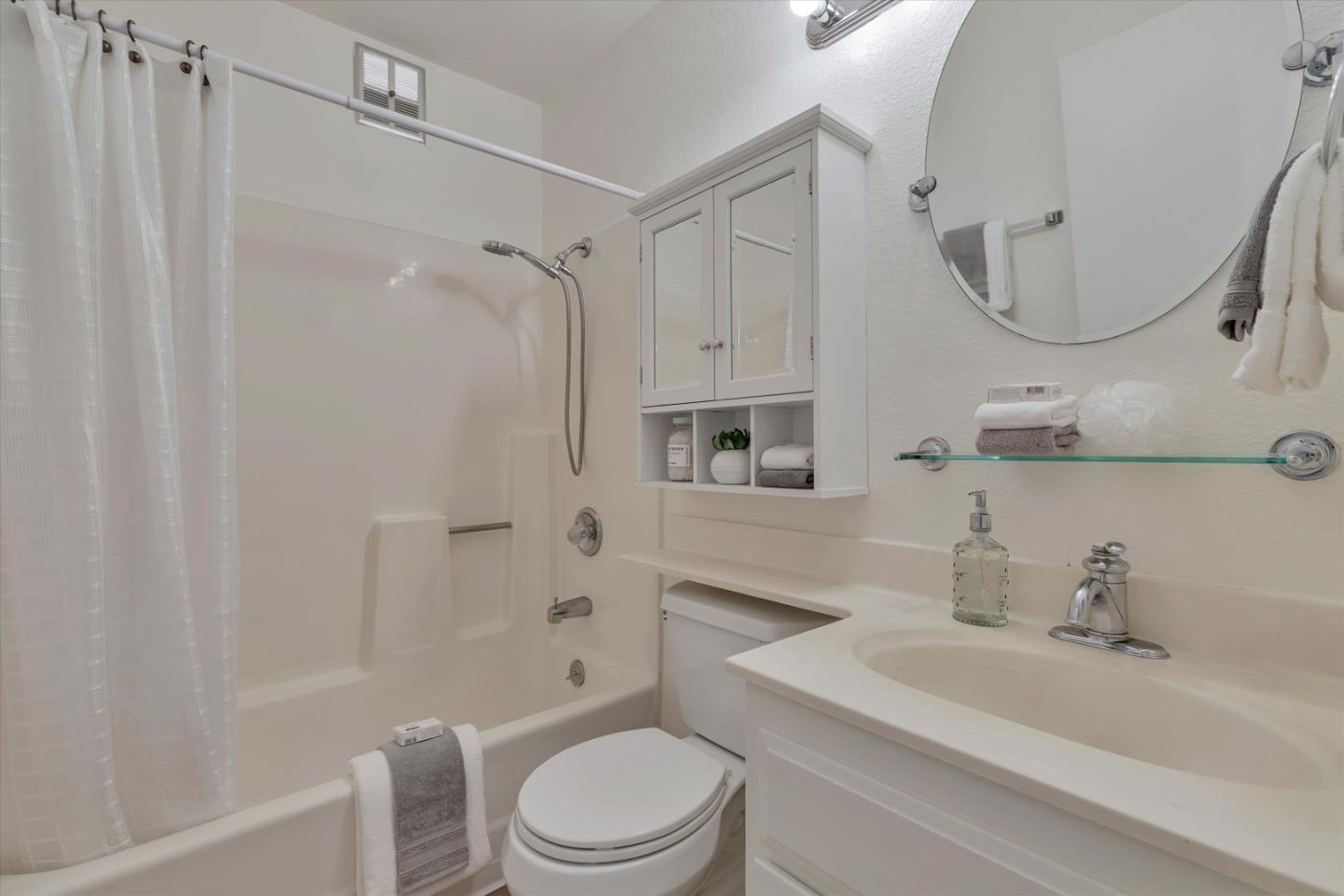 Discover the charm of this inviting second-story condo in a desirable Santa Teresa community! The two-bedroom, two-full-bathroom condo welcomes with freshly installed luxury stone polymer core flooring throughout. Step into the well-designed floor plan, featuring a generous great room complete with a brick surround fireplace, perfect for cozy evenings. Adjacent, you'll find a dining area ideal for enjoying meals with loved ones, with easy access to a spacious private balcony delightful spot for morning coffee or evening relaxation. The primary bedroom offers practicality and comfort with two closets equipped with organizers and its own private balcony, providing a serene retreat. Meanwhile, the second bedroom features a convenient closet and easy access to the hall bathroom, ensuring privacy and functionality for all occupants. Outside, enjoy the community's fantastic amenities, including a clubhouse, refreshing pool, soothing spa, and convenient BBQ grills. Embrace the serene atmosphere of the surrounding greenbelt, where mature trees create a welcoming environment for outdoor strolls and relaxation. Experience the warmth and convenience of Santa Teresa living in this charming condo, where comfort meets practicality in a delightful community setting.
