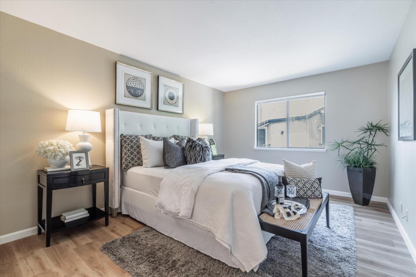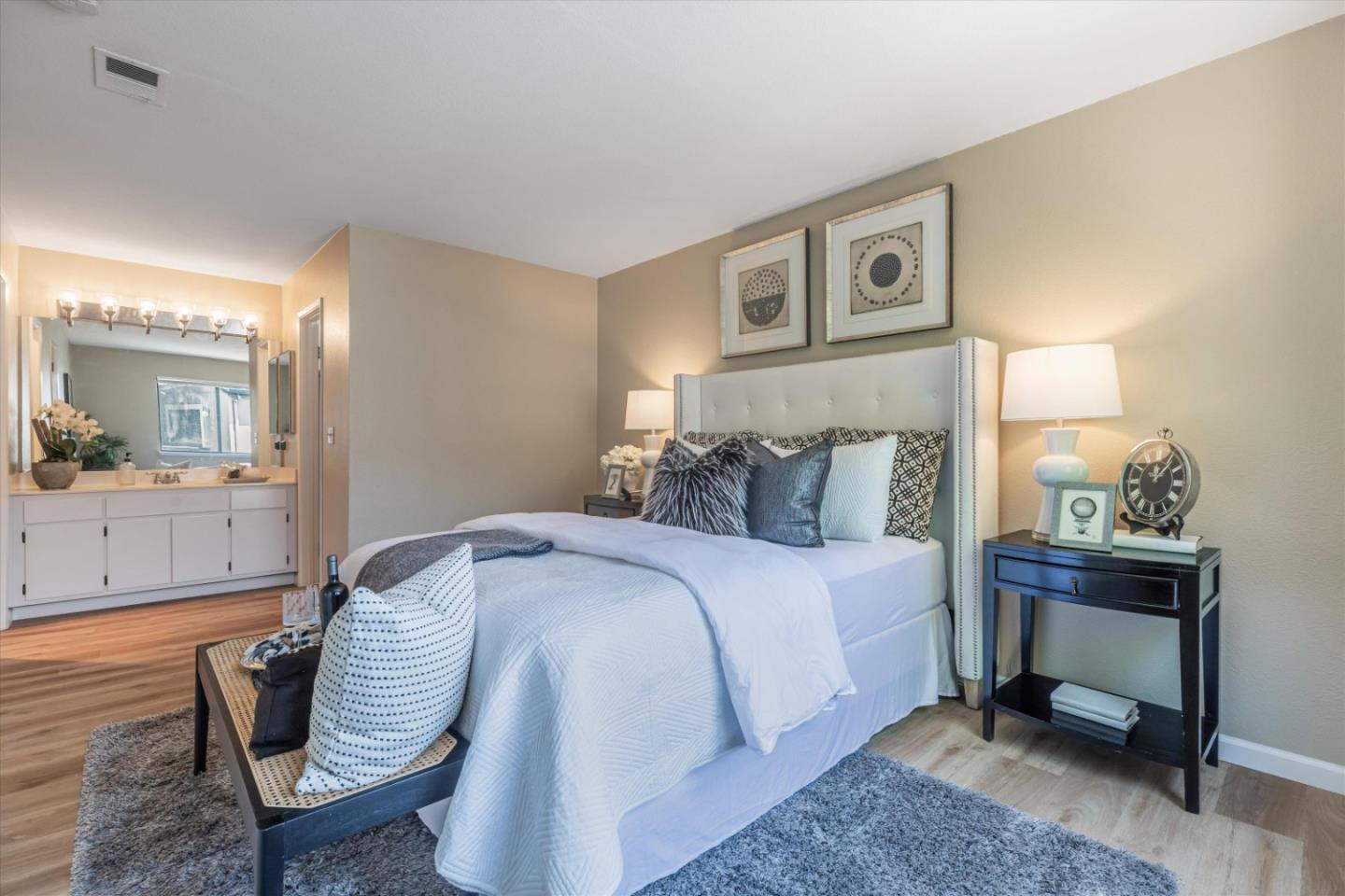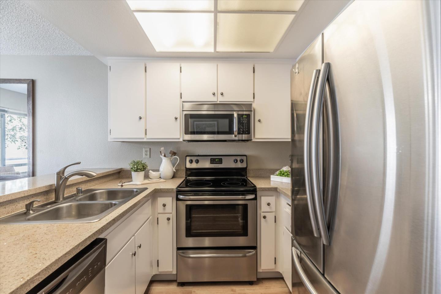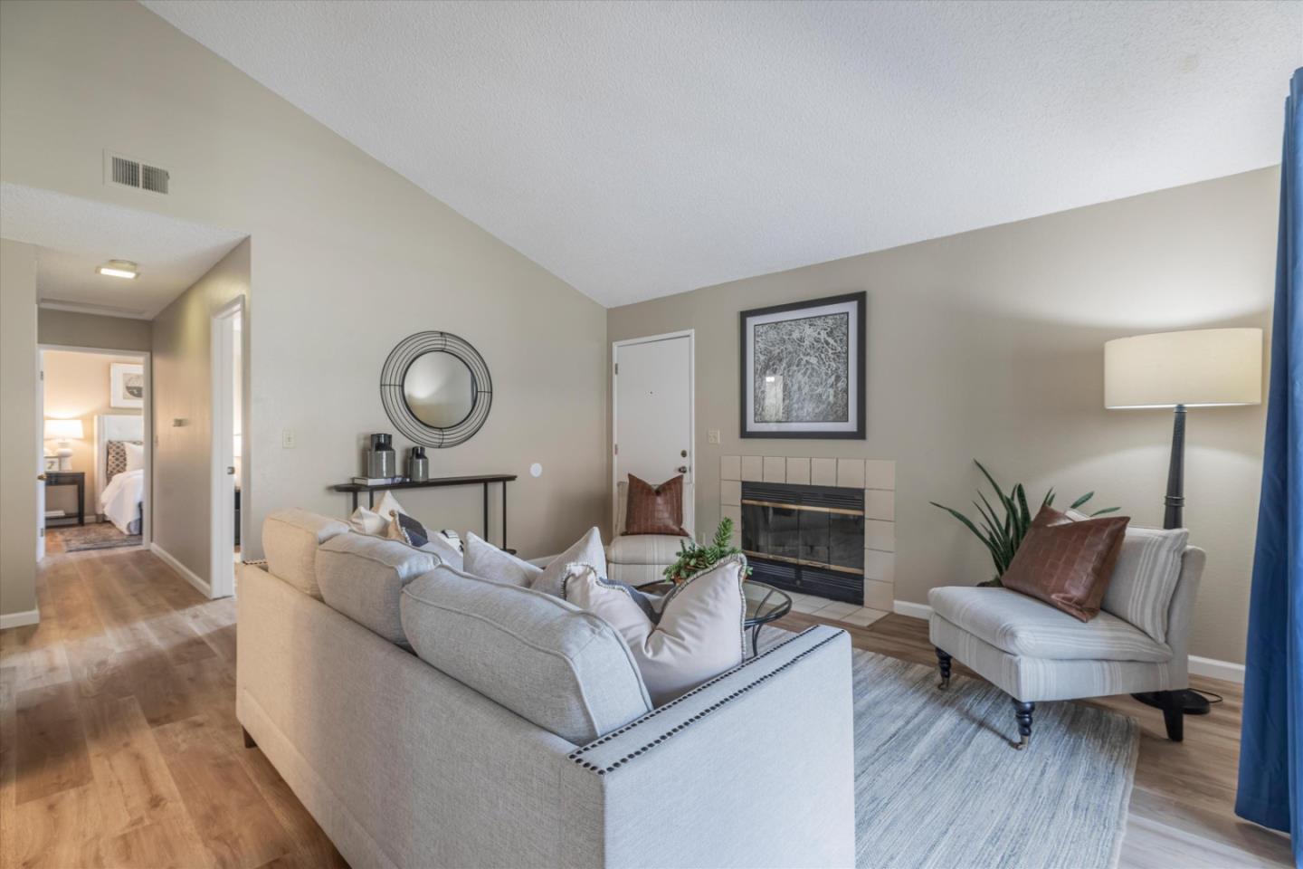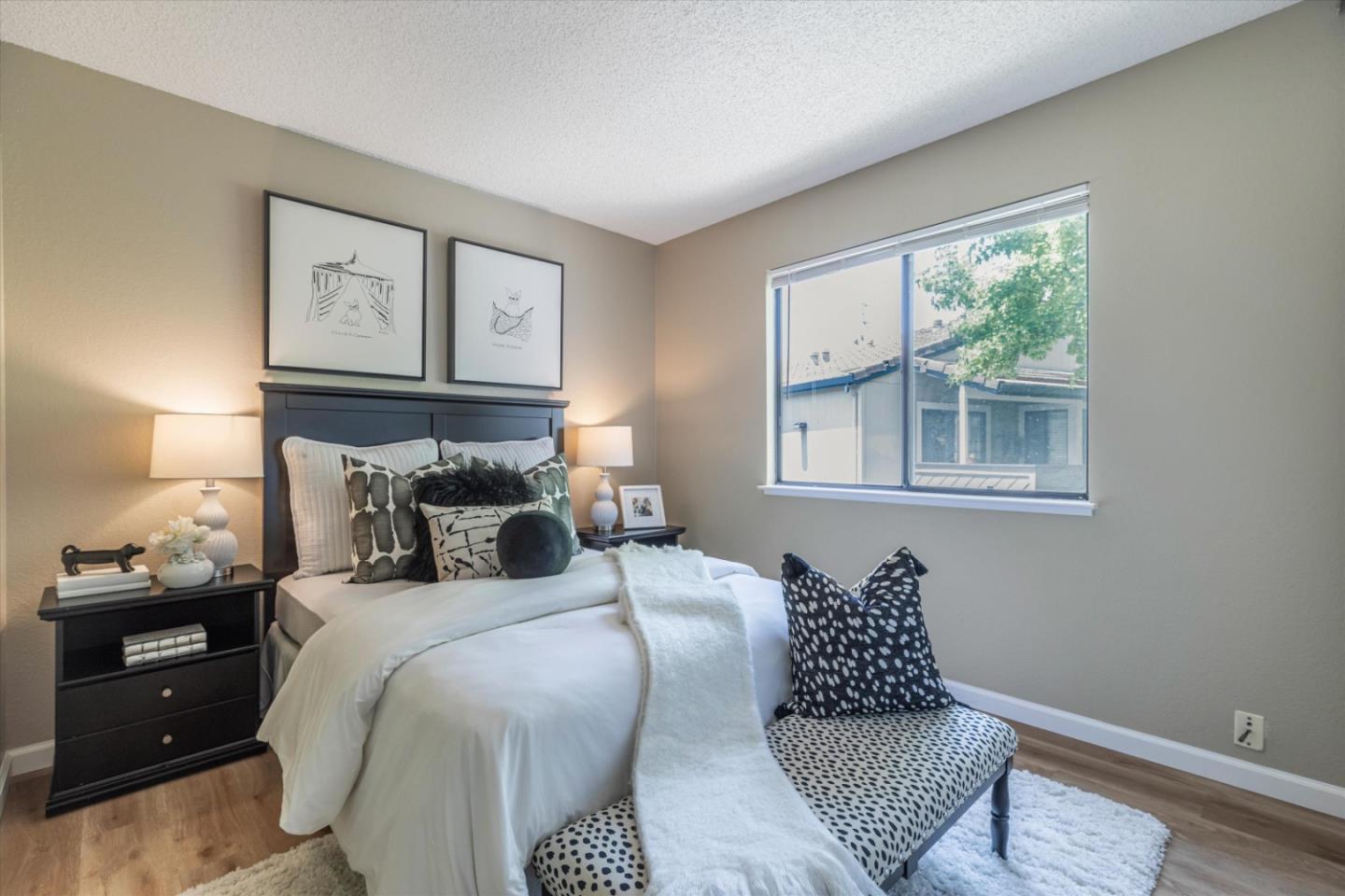 Discover the charm of this inviting second-story condo in the desirable neighborhood! Located in a quiet location in the community, this two-bedroom, two-bathroom condo enjoys newly installed SPC flooring throughout. Step into the well-designed floor plan, featuring a generous great room complete with a wood-burning fireplace, perfect for cozy evenings. A spacious private balcony provides a delightful spot for morning coffee or evening relaxation. The kitchen is equipped with stainless steel appliances and ample cabinetry, while the dining area provides an ideal space for enjoying meals with loved ones. The primary suite boasts a generous walk-in closet and overlooks the neighborhood greenery. The second bedroom is conveniently located near the hall bathroom and in-unit laundry closet with additional cabinetry. Great commute location - close to VTA light rail station and highways 85 and 87