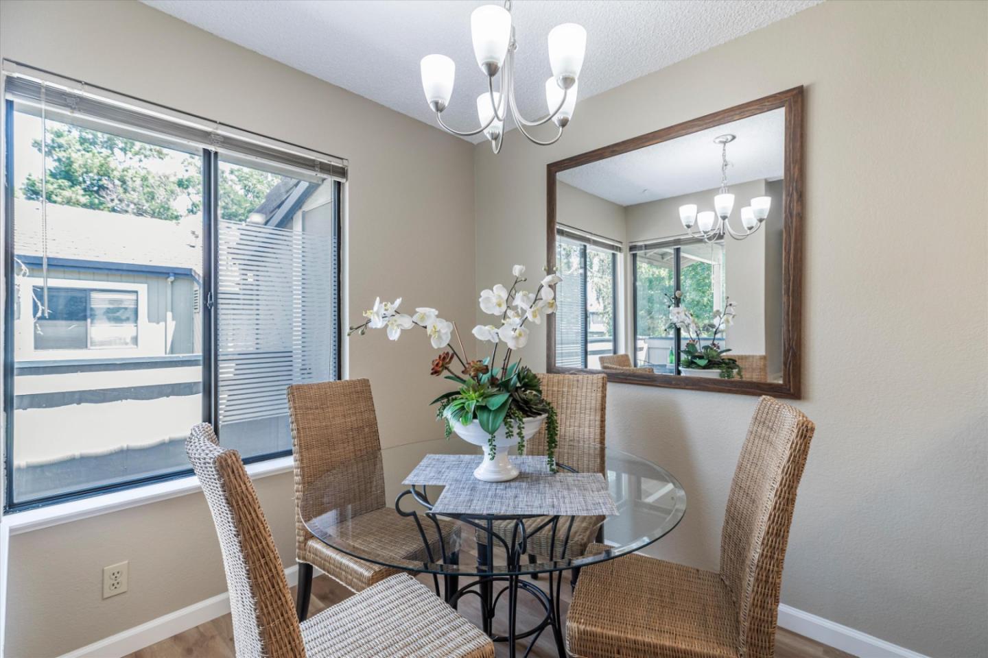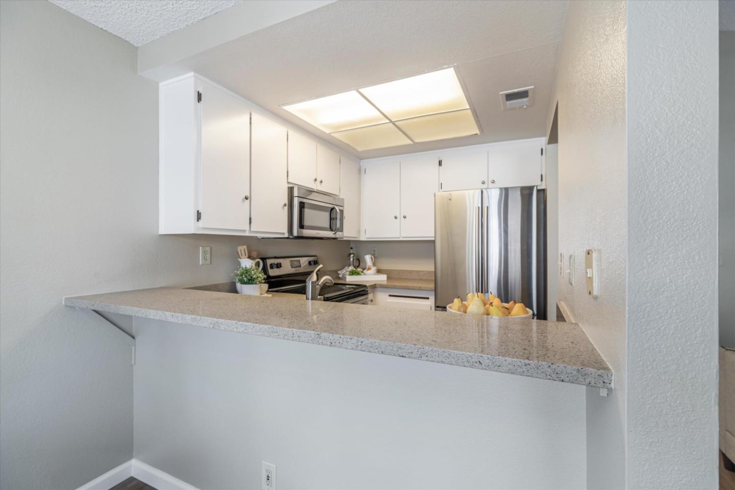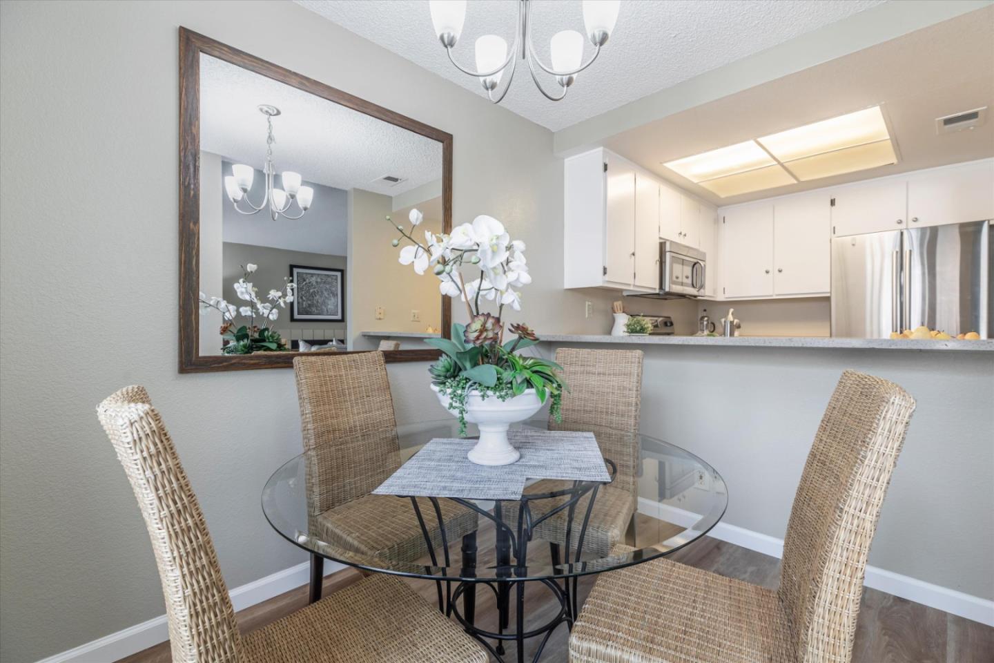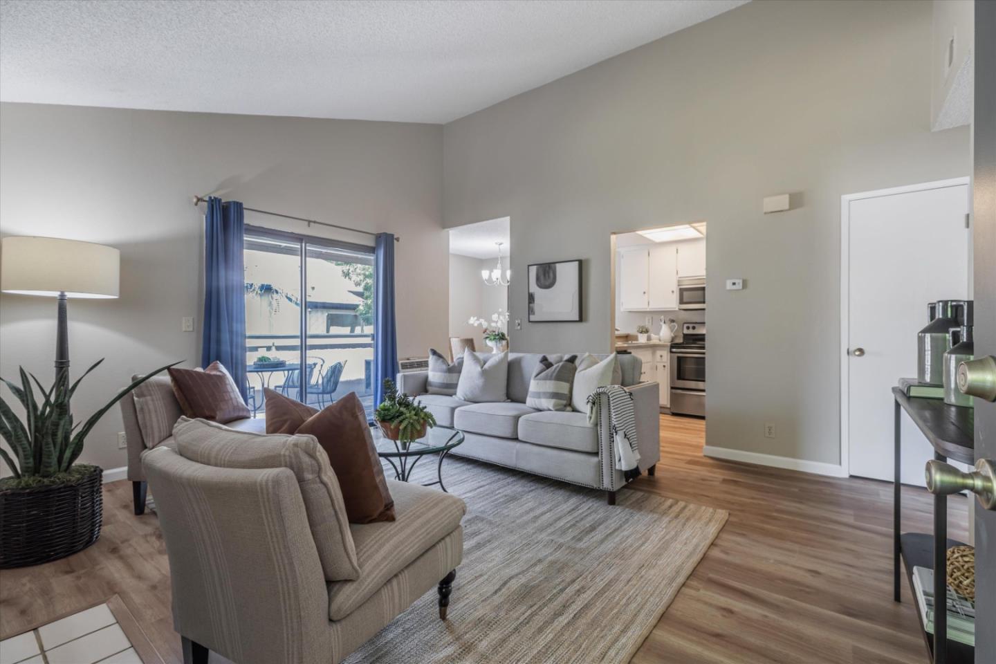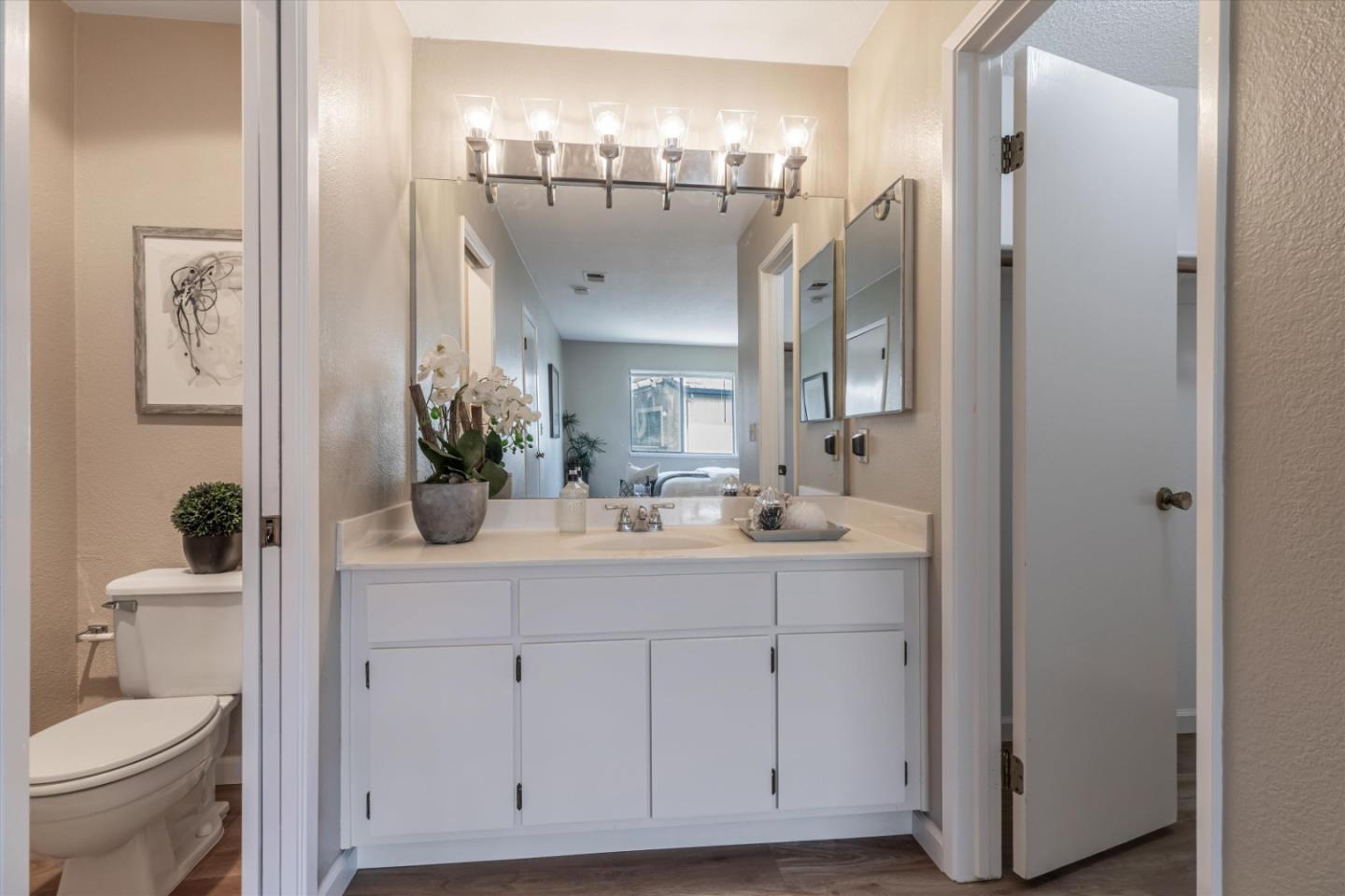 Discover the charm of this inviting second-story condo in the desirable neighborhood! Located in a quiet location in the community, this two-bedroom, two-bathroom condo enjoys newly installed SPC flooring throughout. Step into the well-designed floor plan, featuring a generous great room complete with a wood-burning fireplace, perfect for cozy evenings. A spacious private balcony provides a delightful spot for morning coffee or evening relaxation. The kitchen is equipped with stainless steel appliances and ample cabinetry, while the dining area provides an ideal space for enjoying meals with loved ones. The primary suite boasts a generous walk-in closet and overlooks the neighborhood greenery. The second bedroom is conveniently located near the hall bathroom and in-unit laundry closet with additional cabinetry. Great commute location - close to VTA light rail station and highways 85 and 87