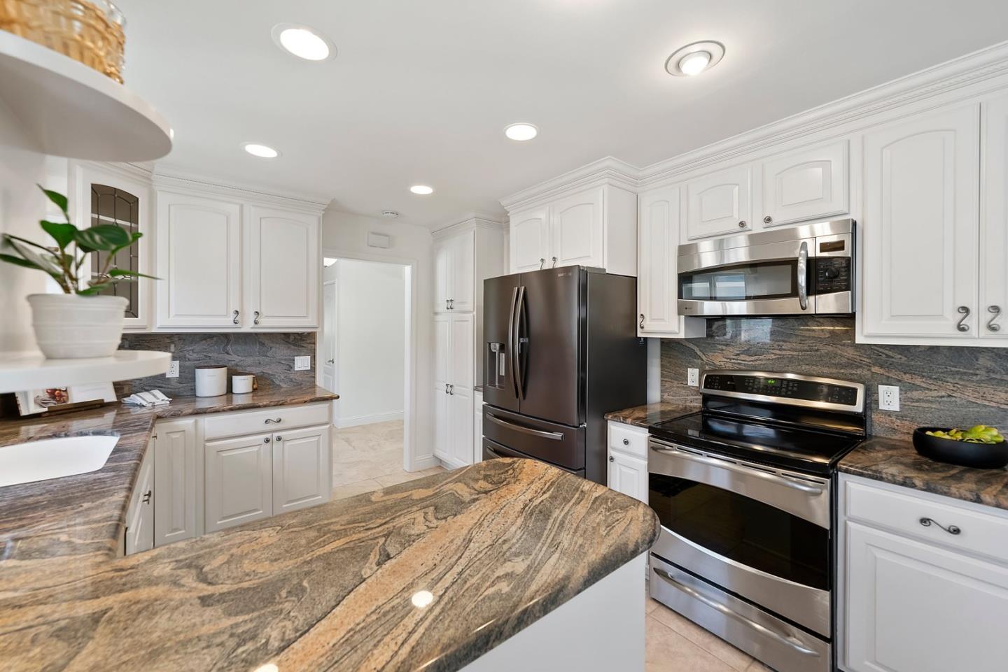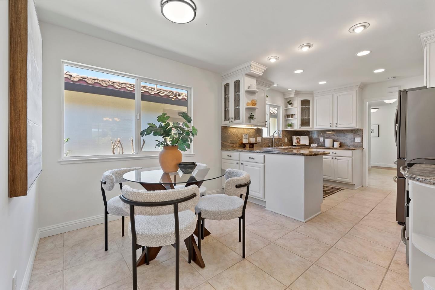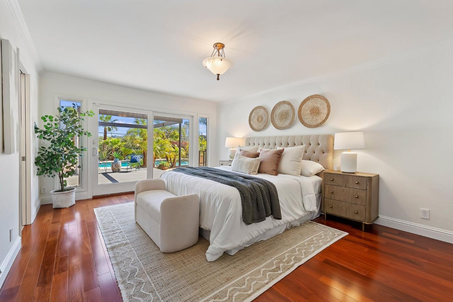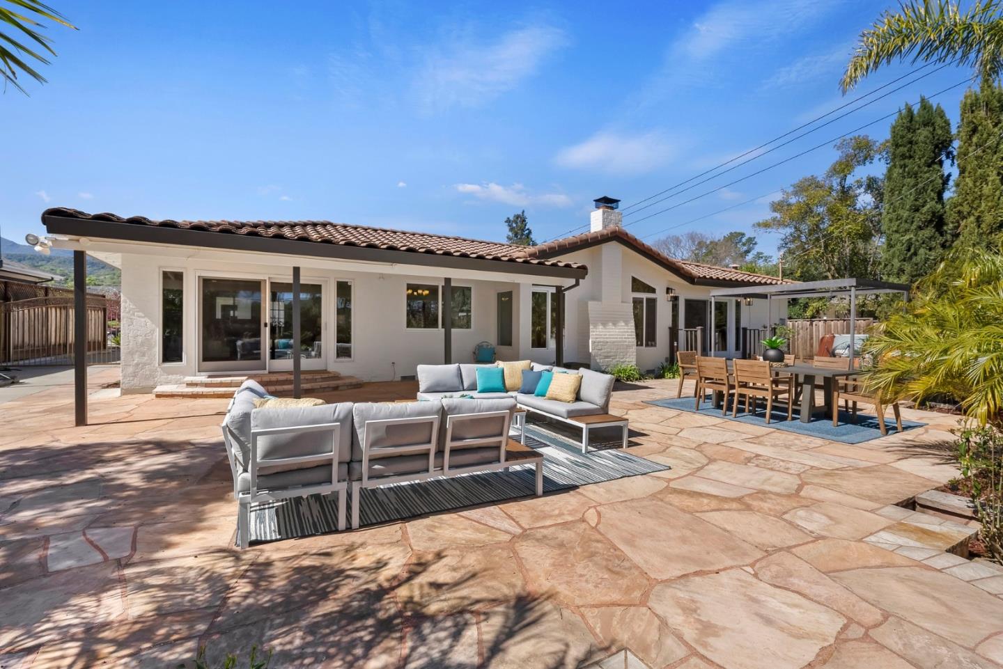 Almaden Valley Country Club neighborhood! Single-story-oversized double lot of half acre! Rare amenity-an oasis for outdoor living! Expansive flagstone paver patio, sparkling pool, spa, mature landscaping will captivate! Paver driveway leads to courtyard entry. Fresh paint inside & out, new garage door, exterior lighting. Picture windows thru out showcase beautiful views. Thoughtful floor plan w/ generous living spaces, 5 beds/2.5 bath. Living room w/ vaulted ceiling/oversized windows frame captivating views, formal dining. Kitchen w/ nook, large family room. Primary suite w/ access thru the sliding doors to rear wood deck/spa, walk-in closet & spa-like bath. Beautiful grounds-Sparkling pool beckons on warm days. Large patios for entertaining or relaxing. Versatile workshop or playhouse, greenhouse & array of fruit & palm trees. Ample storage in shed or oversized detached 2-car garage. Lg gated & paved side yard perfect for RV, boat or oversized vehicles. Steps from parks, hiking trails, Country club, Tennis club! Top Almaden Schools, Williams, Bret Harte Leland!